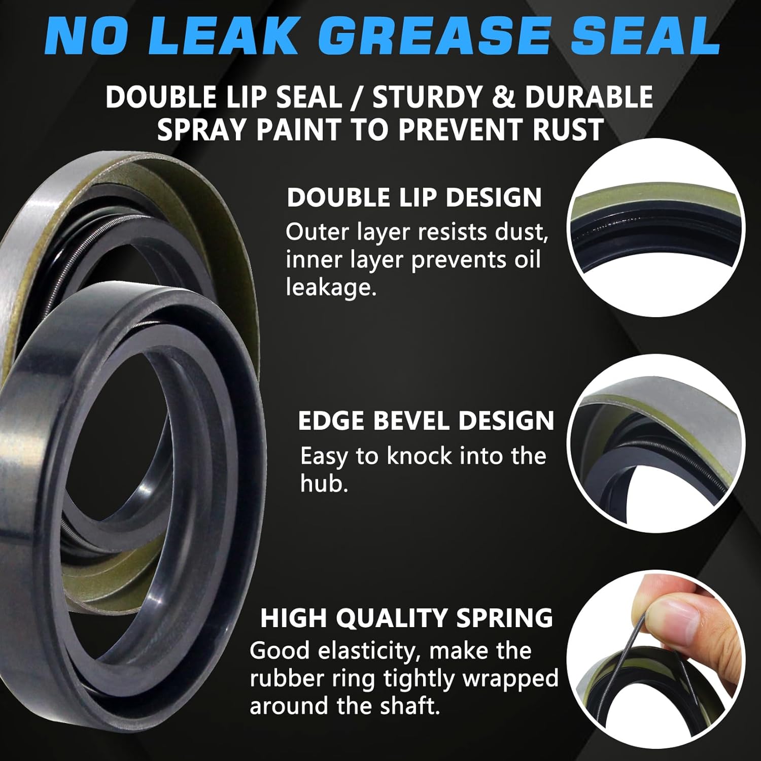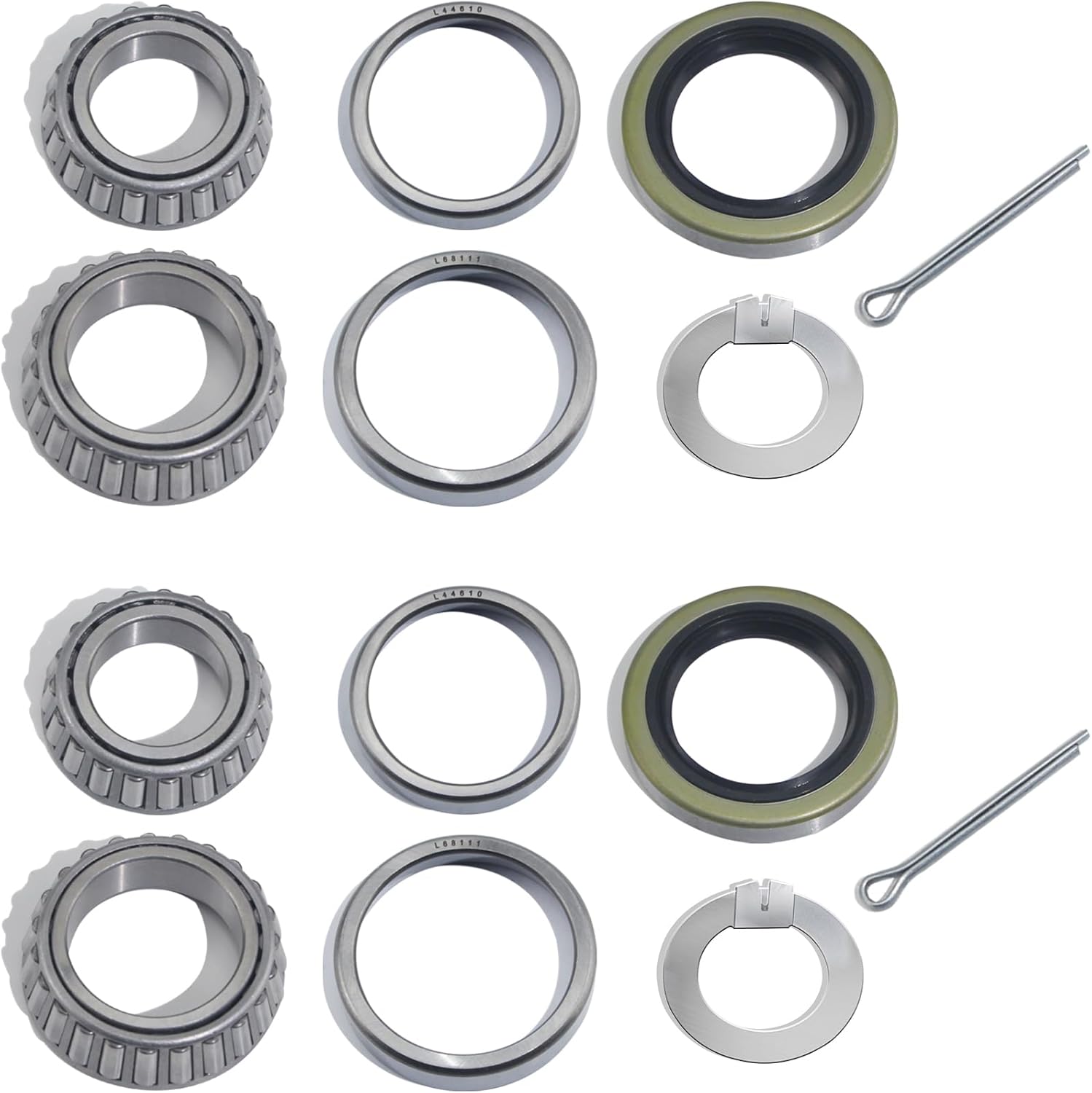 LUXTRKSTO 4Sets 2200 LBS Trailer Hub L44643 L44610 Bearing Kits with Tang Washers · Fit for 1'' Axles/Spindles. · Reinforced spring behind the grease seal lip helps retain grease inside the hub and helps protect water and road grime from entering. · The tang washer is usually used on spindles that have the flat on the threaded end of the spindle. And for some D-style spindles with holes, cotter pins can be used to strengthen the fixation. PACKAGE INCLUDE: 8 X Bearings Sets (L44643/L44610) 4 X Double Lip Grease Seals (12192TB, 1.25''I.D, 1.98''O.D) 4 X Double Lip Grease Seals (15192TB, 1.5''I.D, 1.98''O.D) 4 X Tang Washers 4 X Cotter Pins