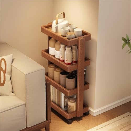 Introducing our versatile 4-tier wooden rolling storage rack, the perfect blend of style and functionality for your living room or kitchen. This thoughtfully designed storage solution is ideal for anyone looking to maximize space while keeping their environment organized and aesthetically pleasing. Crafted from high-quality wood, this storage rack not only provides durability but also adds a touch of elegance to any room. Its slim profile makes it easy to fit in tight spaces, making it an excellent choice for urban living or smaller homes. The four spacious shelves allow you to store a variety of items, from kitchen essentials and pantry supplies to books and decorative pieces in your living room. Imagine rolling this storage cart into your kitchen to easily access spices or snacks while cooking, or using it in your living room to display your favorite books and plants. The mobility offered by the wheels ensures that you can effortlessly reposition the rack as needed, whether you’re hosting guests or simply rearranging your space. This wooden rolling storage rack is not just a functional item; it’s a stylish addition that enhances your decor while serving a practical purpose. Each tier provides ample space, allowing you to keep everything neatly organized and within reach. Elevate your home organization with our 4-tier wooden rolling storage rack, designed to streamline your space while complementing your interior style. Make clutter a thing of the past and enjoy a more organized, functional living environment. Choose quality and style—add this storage rack to your home today!