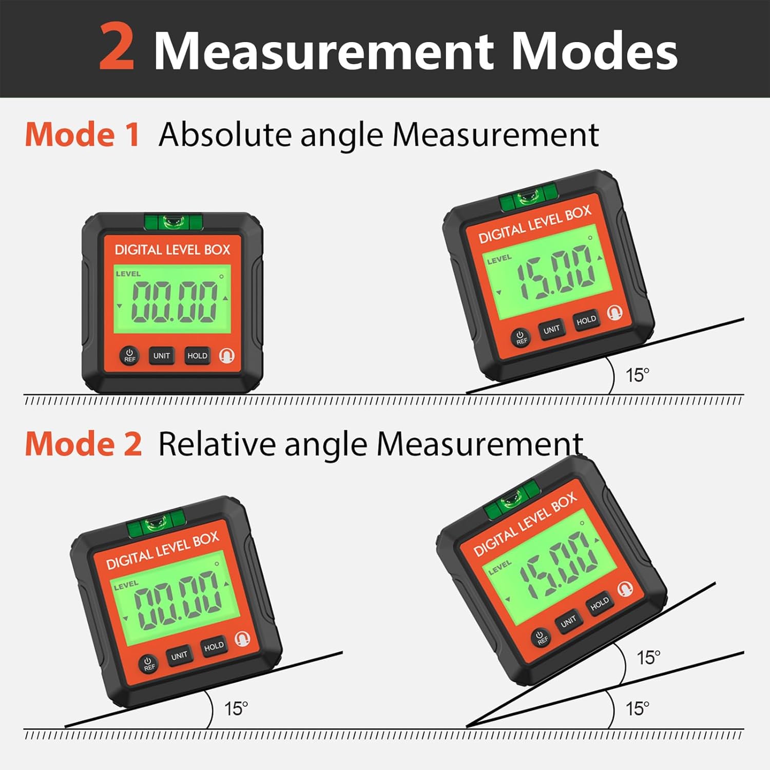 Specification: Item Type: Digital Angle Finder Material: ABS Battery: AAA Battery x 2 (Not Included) Measurement Range: 4x90° Display Resolution: 0.01° Accuracy: ±0.2° Repeatability: 0.05° How to Use: 1. Magnetic attachment to the measurement surface, can be attached to the workpiece being measured 2. Converts between relative measurement and absolute measurement 3. Converts between angle and slope 4. Data lock for easy reading 5. Portable size, easy to use with other measuring tools, expands measurement range packing list: 1 x Digital Angle Finder 1 x Screwdriver 1 x Instruction Manual
