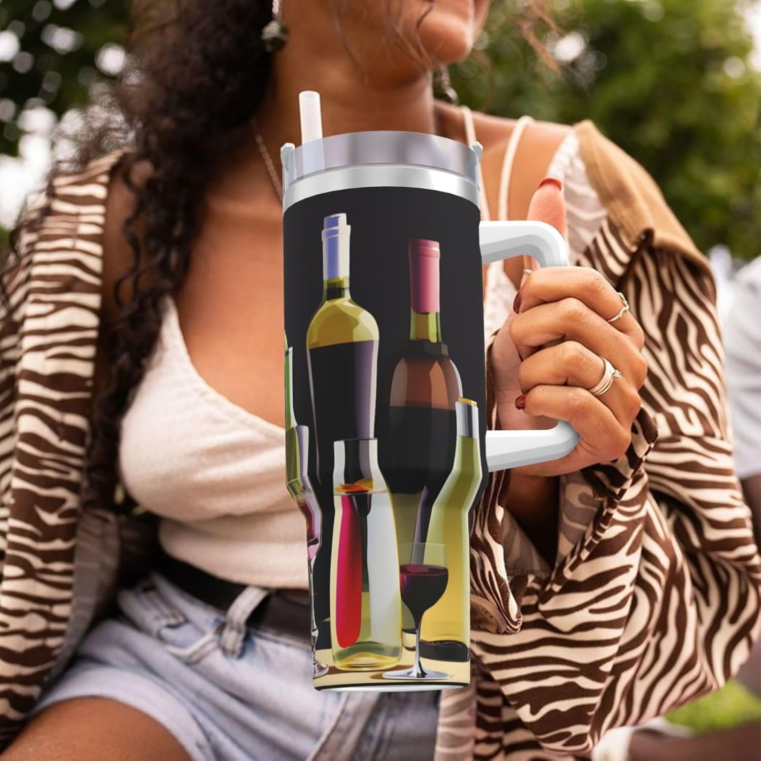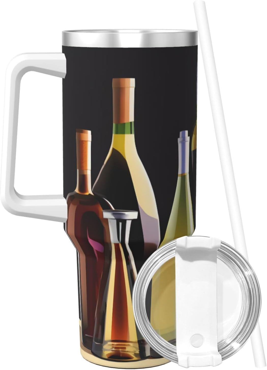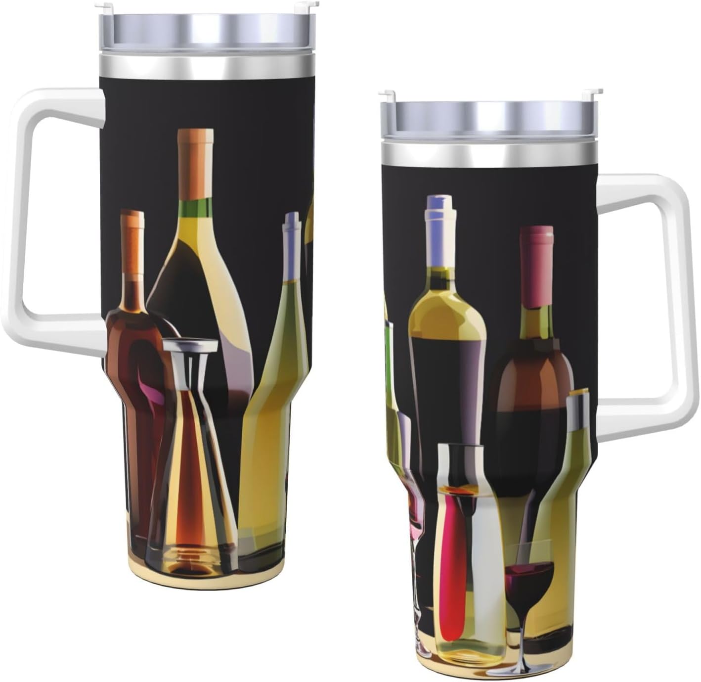 This Cocktail Glasses and Wine Bottles Print Ice Bully Cup features a double layer stainless steel design that can be used for a long time without rusting. The lid has good sealing to prevent water from overflowing, and it is easy to unscrew for filling and cleaning. It can keep water, coffee, or drinks warm or cool for hours and is suitable for travel, camping, and driving.