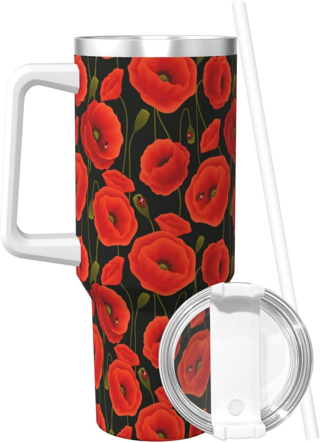 This poppy flowers Print Ice Bully Cup features a double layer stainless steel design that can be used for a long time without rusting. The lid has good sealing to prevent water from overflowing, and it is easy to unscrew for filling and cleaning. It can keep water, coffee, or drinks warm or cool for hours and is suitable for travel, camping, and driving.