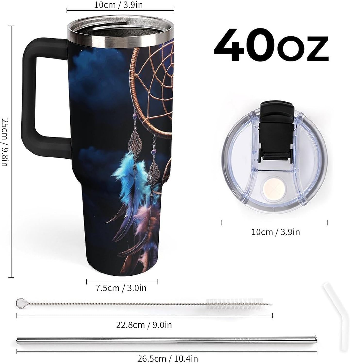 40 oz Tumbler: Keep Your Drinks Hot or Cold for Longer Perfect for long trips or days at the beach, this 40 oz thermal tumbler keeps your drinks at the perfect temperature for hours. The Tumbler is made from 304 stainless steel and fits standard cupholders, and with a variety of pattern options, you can get an Emotional Support Water Bottle. Its double-wall stainless steel design ensures optimal insulation, while the leak-proof lid prevents spills. Plus, its 180-degree rotating handle adds convenience and practicality to your daily adventures. Capacity: 40 oz (approx. 1.2 liters) Double-wall insulation Leak-proof lid 180-degree rotating handle Enjoy your favorite drinks anytime, anywhere with this versatile and practical thermal tumbler! Tumbler is double walled and vacuum insulated to keep your drink hot or cold for hours. The cup is outfitted with an ergonomic handle, that is aesthetically designed for comfort. It comes with a straw lid and two straws so you can enjoy your favorite beverage on the go.