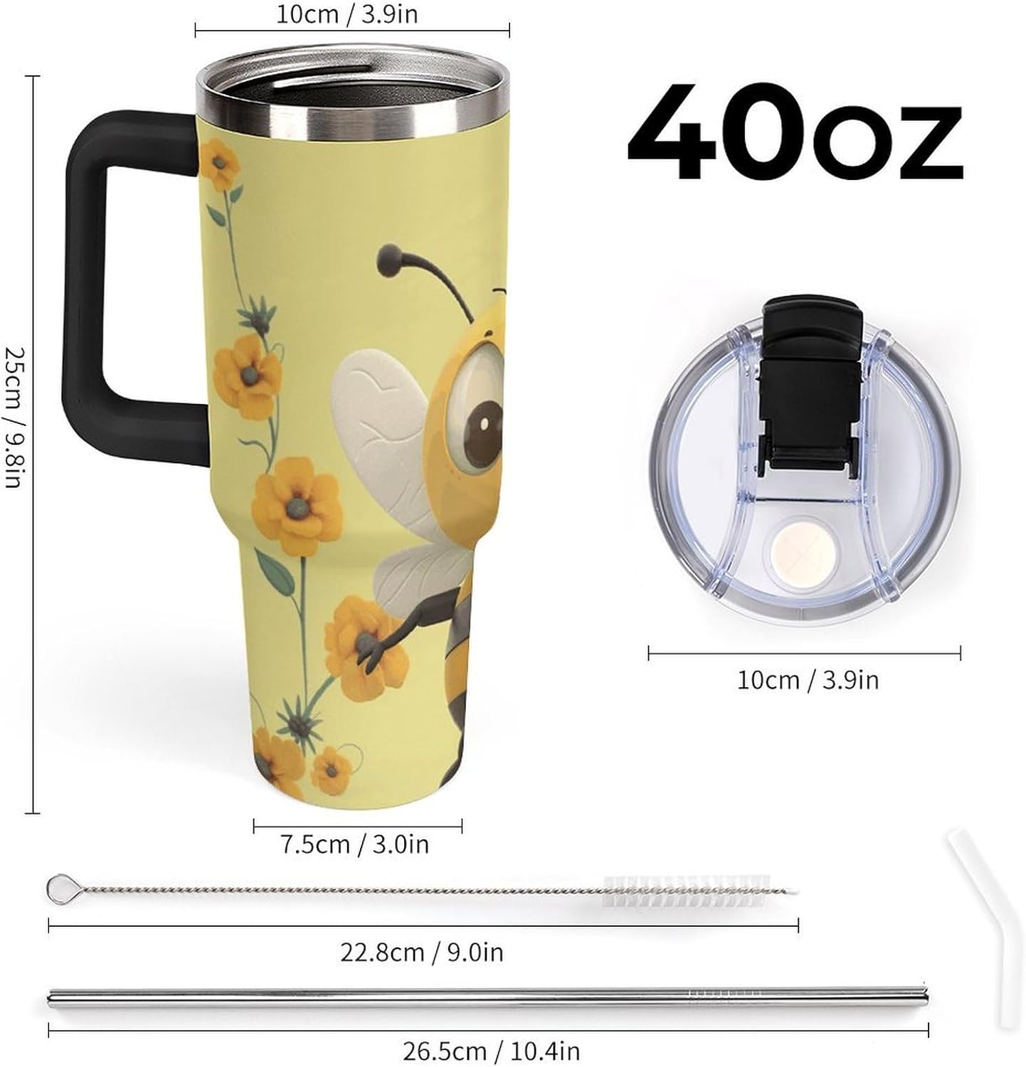 40 oz Tumbler: Keep Your Drinks Hot or Cold for Longer Perfect for long trips or days at the beach, this 40 oz thermal tumbler keeps your drinks at the perfect temperature for hours. The Tumbler is made from 304 stainless steel and fits standard cupholders, and with a variety of pattern options, you can get an Emotional Support Water Bottle. Its double-wall stainless steel design ensures optimal insulation, while the leak-proof lid prevents spills. Plus, its 180-degree rotating handle adds convenience and practicality to your daily adventures. Capacity: 40 oz (approx. 1.2 liters) Double-wall insulation Leak-proof lid 180-degree rotating handle Enjoy your favorite drinks anytime, anywhere with this versatile and practical thermal tumbler! Tumbler is double walled and vacuum insulated to keep your drink hot or cold for hours. The cup is outfitted with an ergonomic handle, that is aesthetically designed for comfort. It comes with a straw lid and two straws so you can enjoy your favorite beverage on the go.