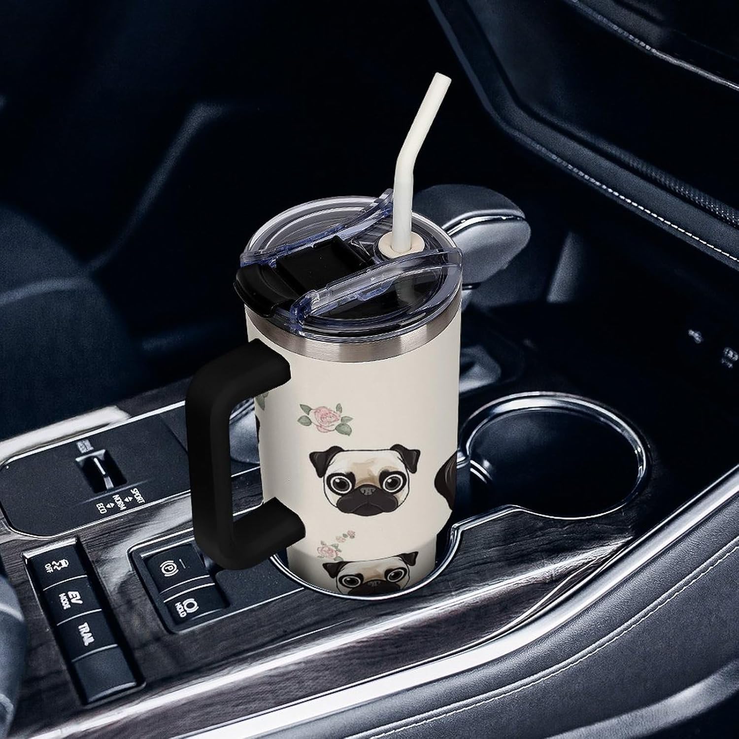 40 oz Tumbler: Keep Your Drinks Hot or Cold for Longer Perfect for long trips or days at the beach, this 40 oz thermal tumbler keeps your drinks at the perfect temperature for hours. The Tumbler is made from 304 stainless steel and fits standard cupholders, and with a variety of pattern options, you can get an Emotional Support Water Bottle. Its double-wall stainless steel design ensures optimal insulation, while the leak-proof lid prevents spills. Plus, its 180-degree rotating handle adds convenience and practicality to your daily adventures. Capacity: 40 oz (approx. 1.2 liters) Double-wall insulation Leak-proof lid 180-degree rotating handle Enjoy your favorite drinks anytime, anywhere with this versatile and practical thermal tumbler! Tumbler is double walled and vacuum insulated to keep your drink hot or cold for hours. The cup is outfitted with an ergonomic handle, that is aesthetically designed for comfort. It comes with a straw lid and two straws so you can enjoy your favorite beverage on the go.