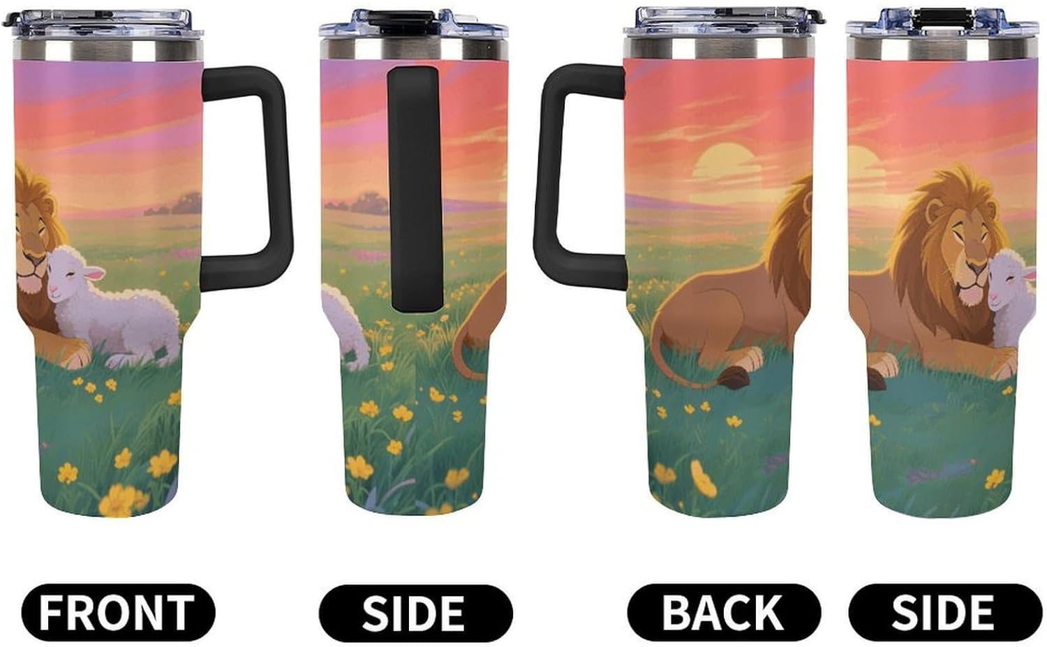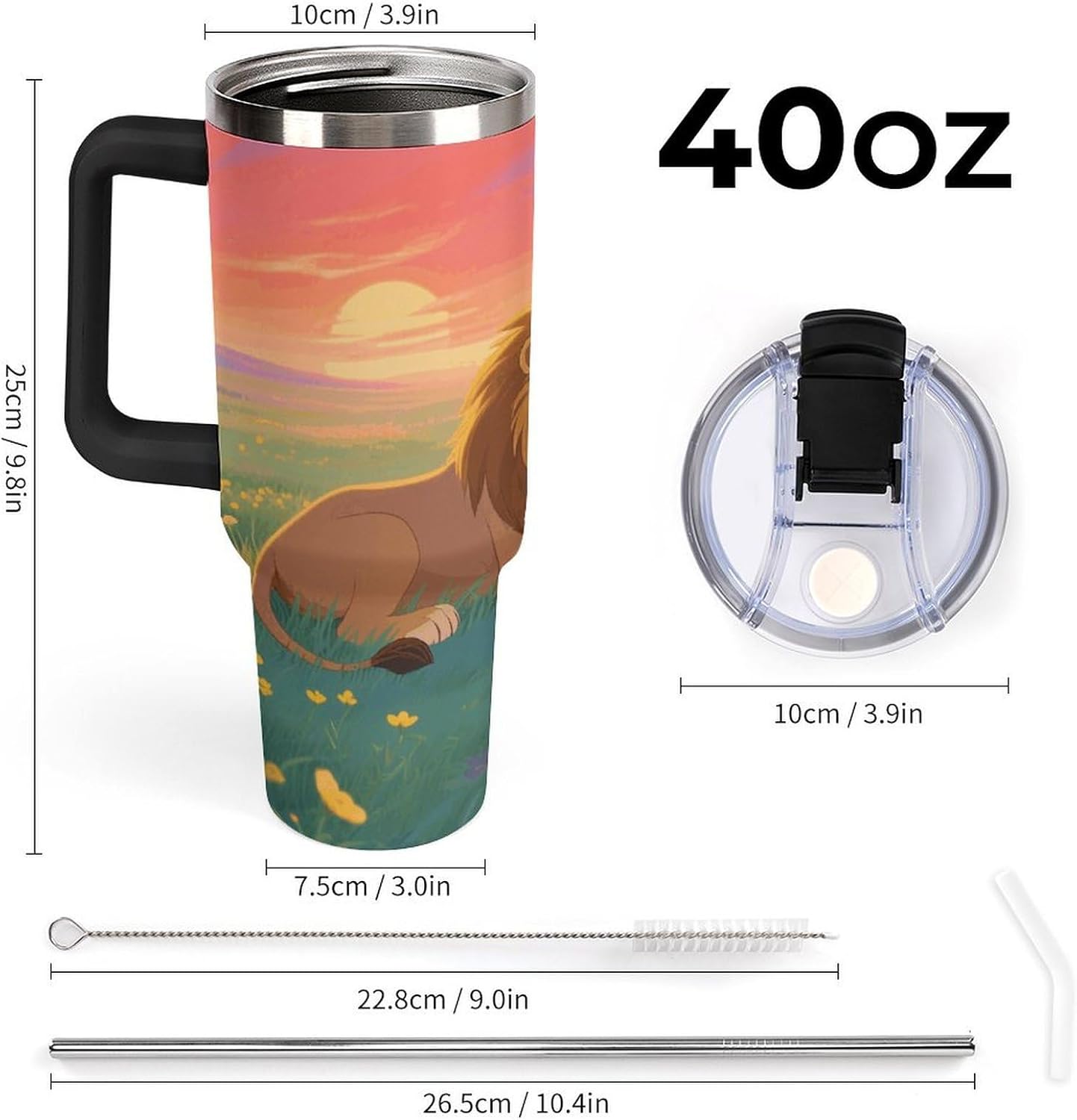 40 oz Tumbler: Keep Your Drinks Hot or Cold for Longer Perfect for long trips or days at the beach, this 40 oz thermal tumbler keeps your drinks at the perfect temperature for hours. The Tumbler is made from 304 stainless steel and fits standard cupholders, and with a variety of pattern options, you can get an Emotional Support Water Bottle. Its double-wall stainless steel design ensures optimal insulation, while the leak-proof lid prevents spills. Plus, its 180-degree rotating handle adds convenience and practicality to your daily adventures. Capacity: 40 oz (approx. 1.2 liters) Double-wall insulation Leak-proof lid 180-degree rotating handle Enjoy your favorite drinks anytime, anywhere with this versatile and practical thermal tumbler! Tumbler is double walled and vacuum insulated to keep your drink hot or cold for hours. The cup is outfitted with an ergonomic handle, that is aesthetically designed for comfort. It comes with a straw lid and two straws so you can enjoy your favorite beverage on the go.