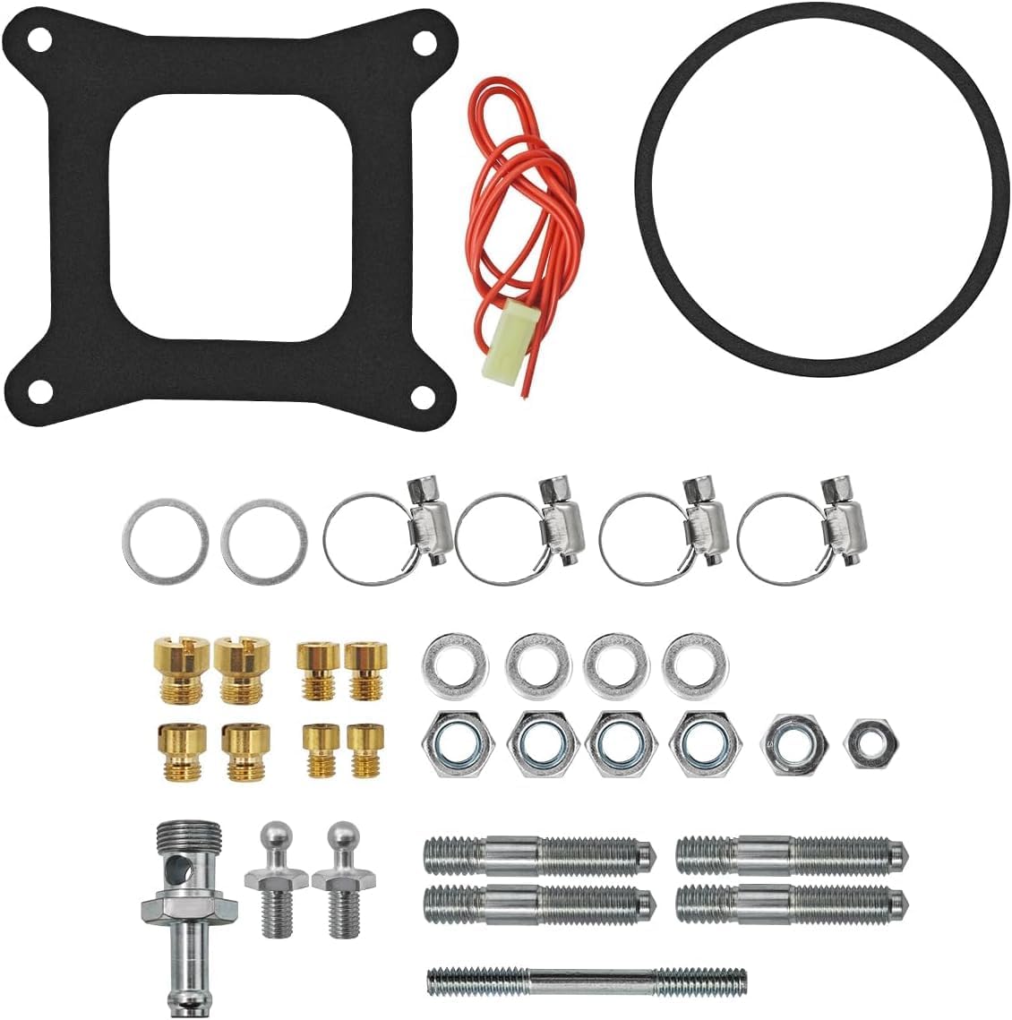 Questions. Q1.There are grease stains when you open the package, has it been used? A:Every carburettor is tested for fuel tightness, passage and pressure before it leaves the factory, so there will be some traces of fuel residue. All products are brand new and have not been used. Q2. I have a leak problem after the first installation, how can I fix it? A:The filler valve is sticking from residual fuel drying out, so you can tap the filler port with a small hammer to loosen the valve a bit before you install it. If you install it and find fuel leaking, just remove the carburettor and dump the fuel inside and install it again. Q3. The carburettor was installed and could not be filled with fuel. A.Same problem as Q2. Tap the fuel inlet with a small hammer to loosen the fuel valve enough. Also check the fuel input pressure to make sure it is between 4.5 and 8 PSI.