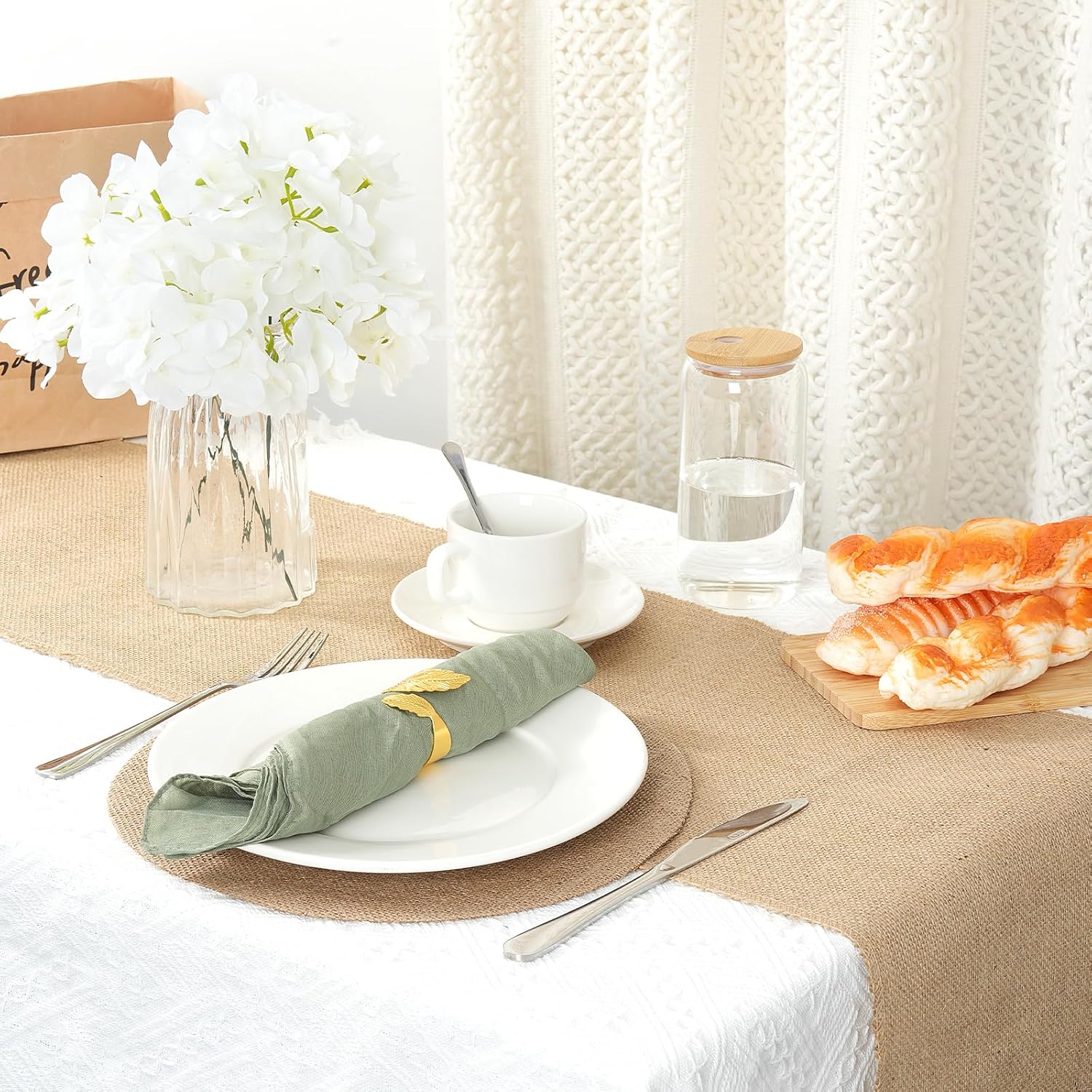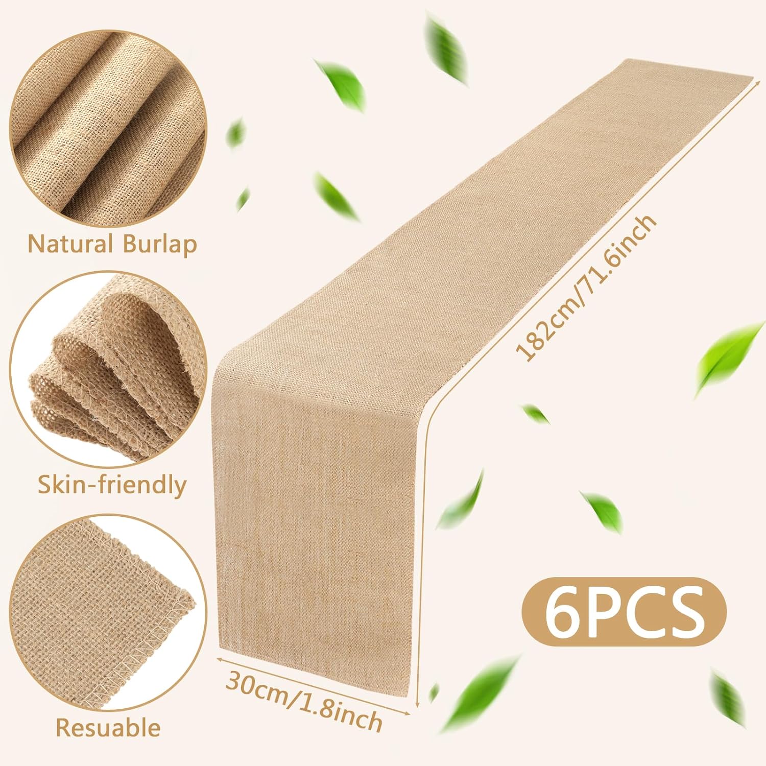 | Included Components | 36 Round Jute Placemats, 6 Rustic Burlap Table Runners |