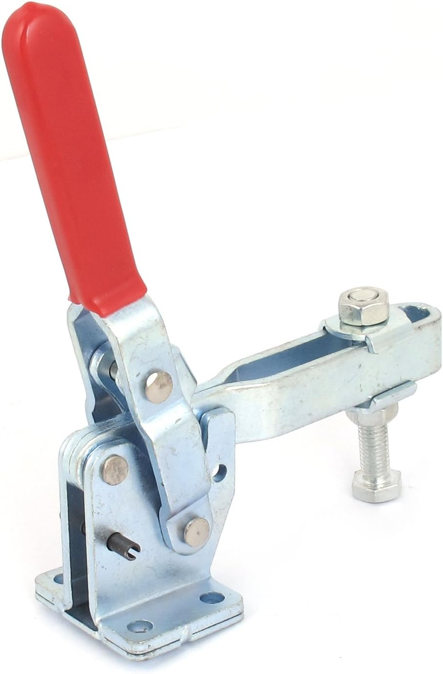 1.GH-10247 Model, Vertical Type toggle clamp, 58-70 Degree Handle Opening Angle, 100-130 Degree Bar Open Angle, 450kg holding capacity.2.Side Mount hold-down toggle clamp, short bar, flanged base.3.Most suitable for quickly holding down sheet metal or circuit boards, for machine operation, welding, mould, electronic equipment assembly, etc field.4.During clamping, the lever is controlled to prevent impact on functioning due to side thrust.5.Rubber cover handle for easy, safe and comfortable operation.