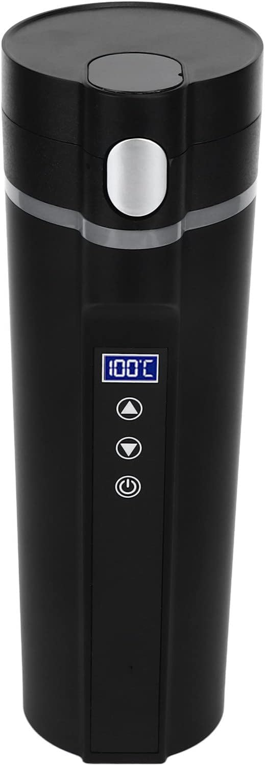 1. [VERSATILE] - Suitable for a variety of beverages such as coffee, tea, or milk. 2. [AUTO SHUTOFF] - Safety feature turns off the mug when water is low or the cup is moved. 3. [BUILT TO LAST] - Crafted from quality materials for long-lasting durability. 4. [PREMIUM QUALITY] - Interior made of 304 stainless steel for a premium touch. 5. [HEATS QUICKLY] - Get your drink to the perfect temperature in no time. Specification: Item Type: Electric Heated Travel Mug Material: Stainless Steel, ABS Capacity: 450ml Voltage: 12-24V (Universal) Height:Approx. 23.5cm / 9.3in Diameter: Approx. 7.1cm / 2.8in Weight: Approx. 513g / 18.1oz How to Use: 1. Switch and power mode: After the power is turned on, the display screen shows the temperature of the water in the cup, and the upper and lower buttons can select the temperature from 30 to 100 °C. When pressing the switch key, the font below the font will flash for 3 seconds to enter the confirmation work. If you need to cancel, press the switch key. 2. Power switching: The factory default power is high power, long press the key for 5 seconds to display P40 ( means high power P40 means low power). 3. Stirring function: Press the stirring button to automatically rotate for 30 seconds. This feature is optional. Package List: 1 x Electric Heated Travel Mug 1 x Cigarette Lighter