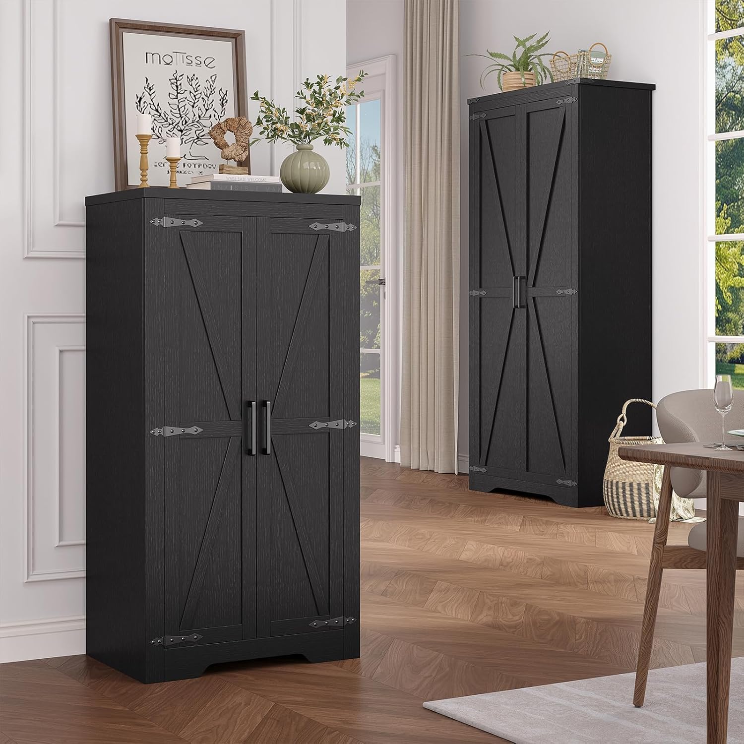 47" Kitchen Pantry Cabinet, Farmhouse Kitchen Pantry Storage Cabinets with 2 Door and 2 Adjustable Shelves, Freestanding Cupboard for Dining Room, Living Room, Bathroom