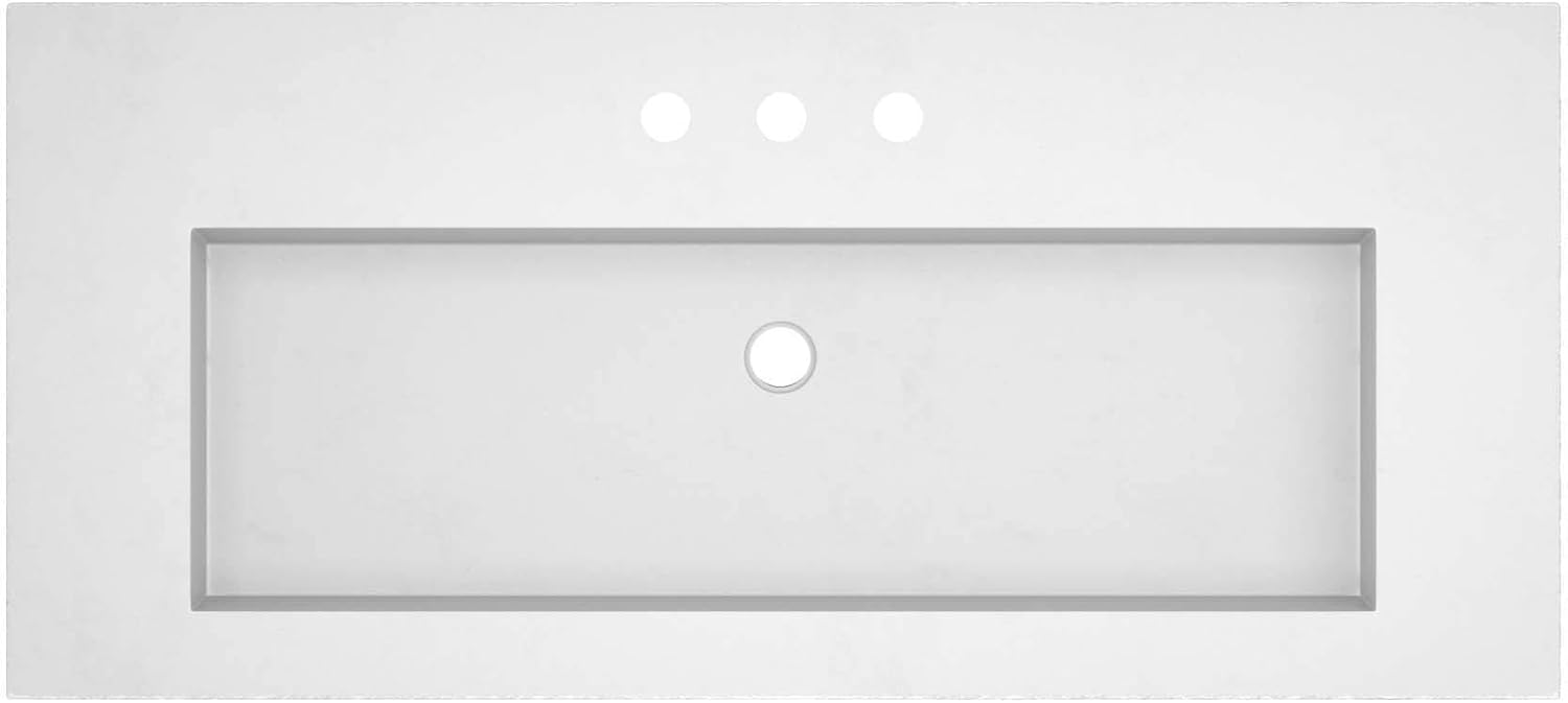 Named after the famous beach town in California where sand meets surf in perfect harmony, Capistrano is the perfect blend of vanity top and sink. With its spacious trough shaped sink integrated into the concrete vanity top, Capistrano is a beautifully styled piece with serious functionality, that makes sink installation a breeze. Included Components: Stone composite vanity top with a single basin sink - cabinet sold separately Native Trails Nsvt48 Specifications: Vanity Top Width: 48-1/2" (left edge to right edge) Vanity Top Height: 5-1/2" (top to bottom) Vanity Top Depth: 21-3/4" (front edge to back edge) Sink Cutout Length: 48-1/2" (left to right) Sink Cutout Width: 21-3/4" (front to back) Basin Width: 12" (back inner rim to the front inner rim) Basin Length: 37" (left inner rim to right inner rim) Basin Depth: 4-3/4" (bottom of basin to rim) Number of Faucet Holes: 3 Faucet Centers: 8" (distance between handle installation holes)