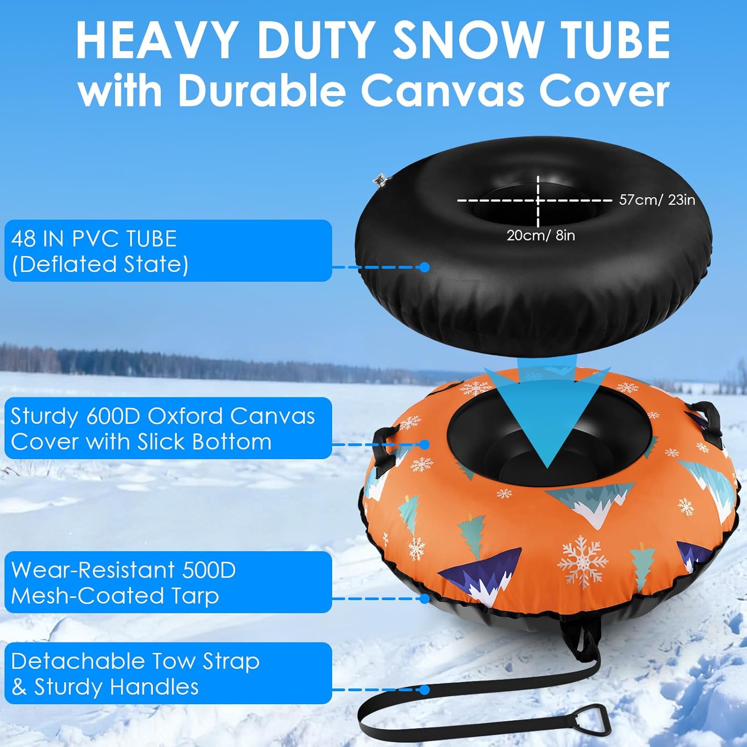 | Included Components | 2 PCS repair vinyl patch, Detachable Tow Strap, Premium Canvas Cover, Snow Tube |