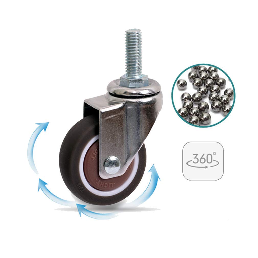 Description: - Material: Tpe Rubber Wheel + Cold Rolled Steel Bracket - Ball Bearings, High Speed, Stable Operation, Wear Resistance and Durability. - Suitable for All Kinds of Applications Diy is Suitable for Industrial Applications in Homes, Schools, Shops, Garages, Shops, Trolleys and Hospitals, Small Equipment and Small Spaceniture for Perfecters, Including Coffee Tables, Plant Stands, Bookshelves, Shoe Boxes, Toy Box, Shopping Cart, Workbench, Chassis Storagespecification:Wheel Diameter: 1/1.5/2/2In (25/38/50/50Mm)Installation Height: 1.5/2/2.6/2.8In (39/53/67/70Mm)Screw Size: 0.3*0.6In (M8*15Mm); 0.3*0.8In (M8*20Mm); 0.3*0.8In (M8*20Mm); 0.4*1In (M10*25Mm)Load: 45/75/90/150Kg (4)Quantity: 4Note:1. Please Allow Slight Dimensional Deviation and Slight Chromatic Aberration, Thank You for Your Understanding.2. Welcome to Our Store! If You Have Any Questions, Please Feel Free to Contact Us So That We Can Provide You with the Service. If You Are Satisfied with Our Products, Please Leave Valuable Suggestions and Comments.