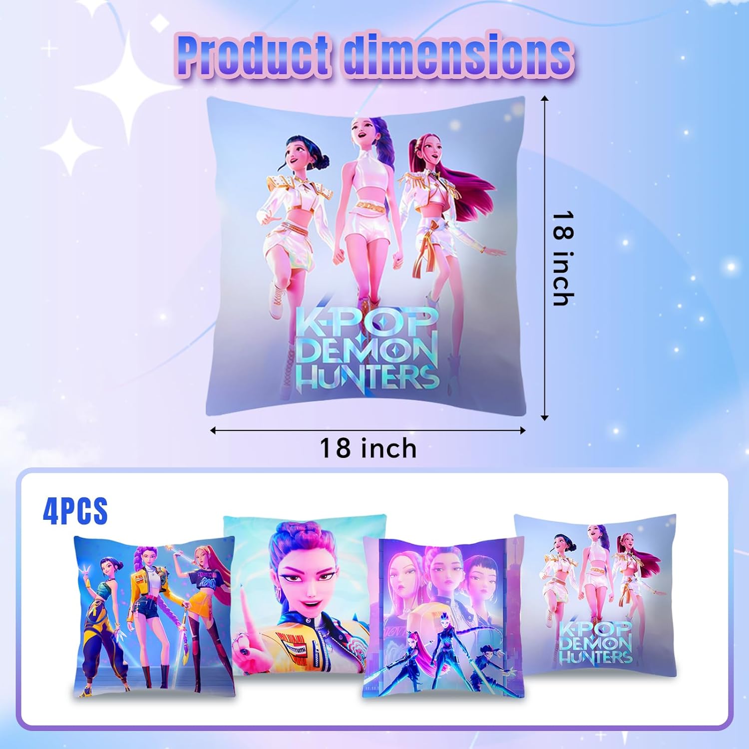 4 Pack Demon Hunters Pillow Covers, 18" x 18" 4 Unique Designs, Soft Polyester, Decorative Pillowcases for Home, Fans, Gifts