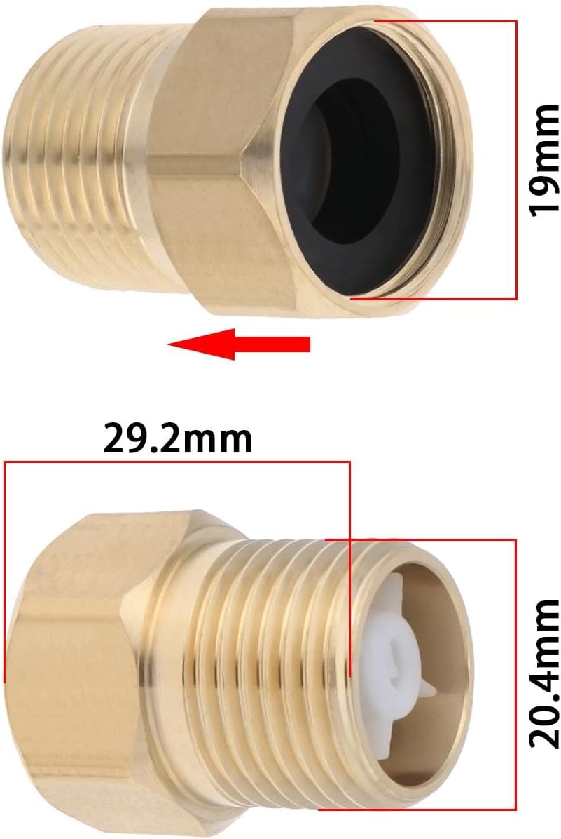 Item Descriptions:-[Premium Brass Construction] Ensures durability and long-lasting performance.-[Universal Compatibility] Fits G1/2-inch female thread to G1/2-inch male thread connections.-[Compact Design] With overall dimensions of 20.4x29.2mm, it's suitable for various applications.-[Prevents Backflow Accidents] Regulates one-way water flow, preventing accidents caused by backflow. Ensure correct installation direction to avoid water blockage.-[Wide Application Range] Suitable for water heaters, tanks, towers, toilets, garden hoses, RVs, as well as landscape sprinklers, swimming pools, water parks, aquariums, and more.Package:4 x Brass Check ValvesItem Specifications:Material:BrassThread Size:G1/2-inch (Female Thread) to G1/2-inch (MaleThread)Overall Size:20.4x29.2mm