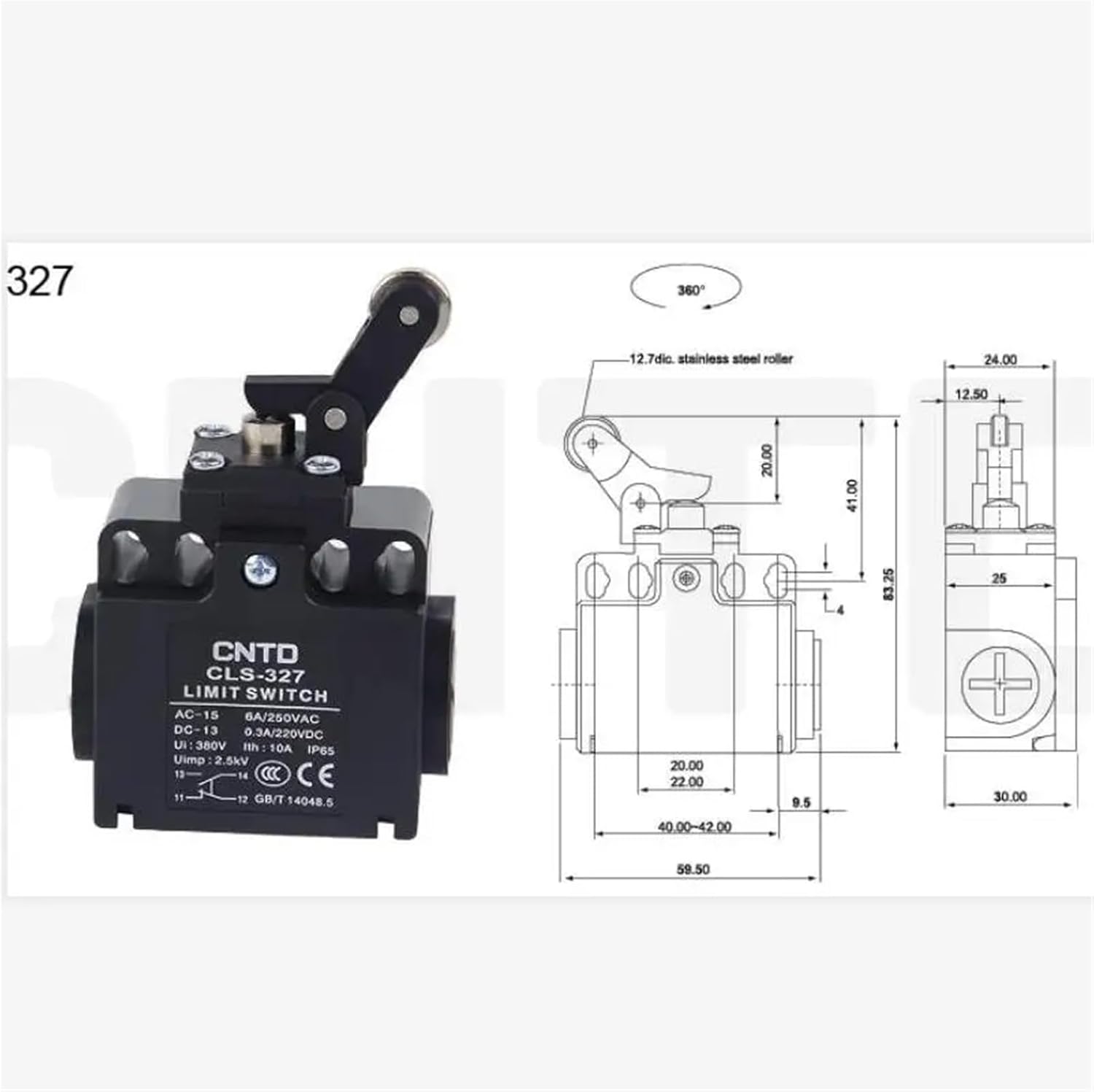 Industrial SwitchesPushbutton Switches4Pcs Micro Limit Switch CLS-301 CLS-303 CLS-311 CLS-321 CLS-327 CLS-361 CLS-371 CLS-381 CLS-391 Industrial Equipment Parts==========Placement on Vehicle : leftInterchange Part Number : CLS-381Other Part Number : CLS-381Part Number : CLS-381Max. Voltage : 380VMax. Current : 10AProtection Level : IP64Model Number : CLS-381