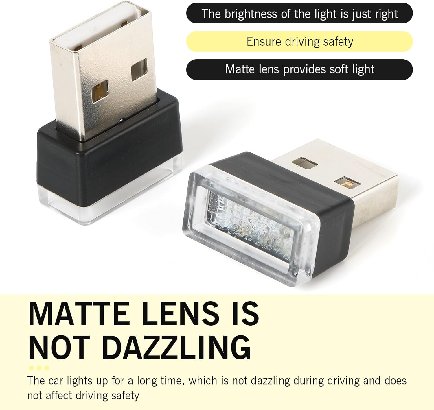 4PCS Mini USB LED Light, Plug-in USB Decor Light, Portable Car Atmosphere Lamp, Interior Car Lights, Car Decoration Ambient Light, Universal for Most Car Accessories