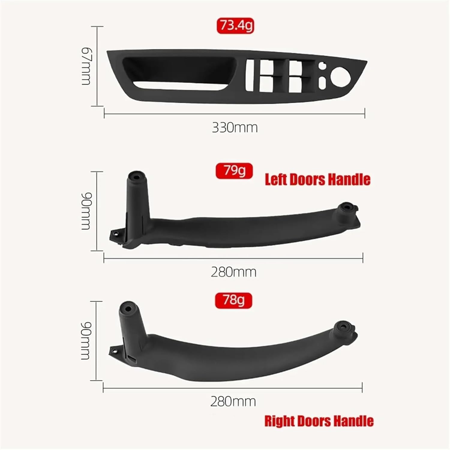 Fitment:- for bmws X5 X6 E70 E71 E72 2006-2014Feature:- This is a Inner Door Panel Handle Pull Trim Cover- Direct Fit, Easy installation, and Simple operation- Correct Connector No cutting or splicing- Strict quality control standards to build and test.Specifications:- Material: PC&ABSColor BlackBeige,Brown,Carbon Fiber- Fitment Type: Direct ReplacementNote:1. There may be slight size deviations due to manual measurement, different measuring methods and tools.2. The picture may not reflect the actual color of the item because of different photographing light, angle and display monitor.
