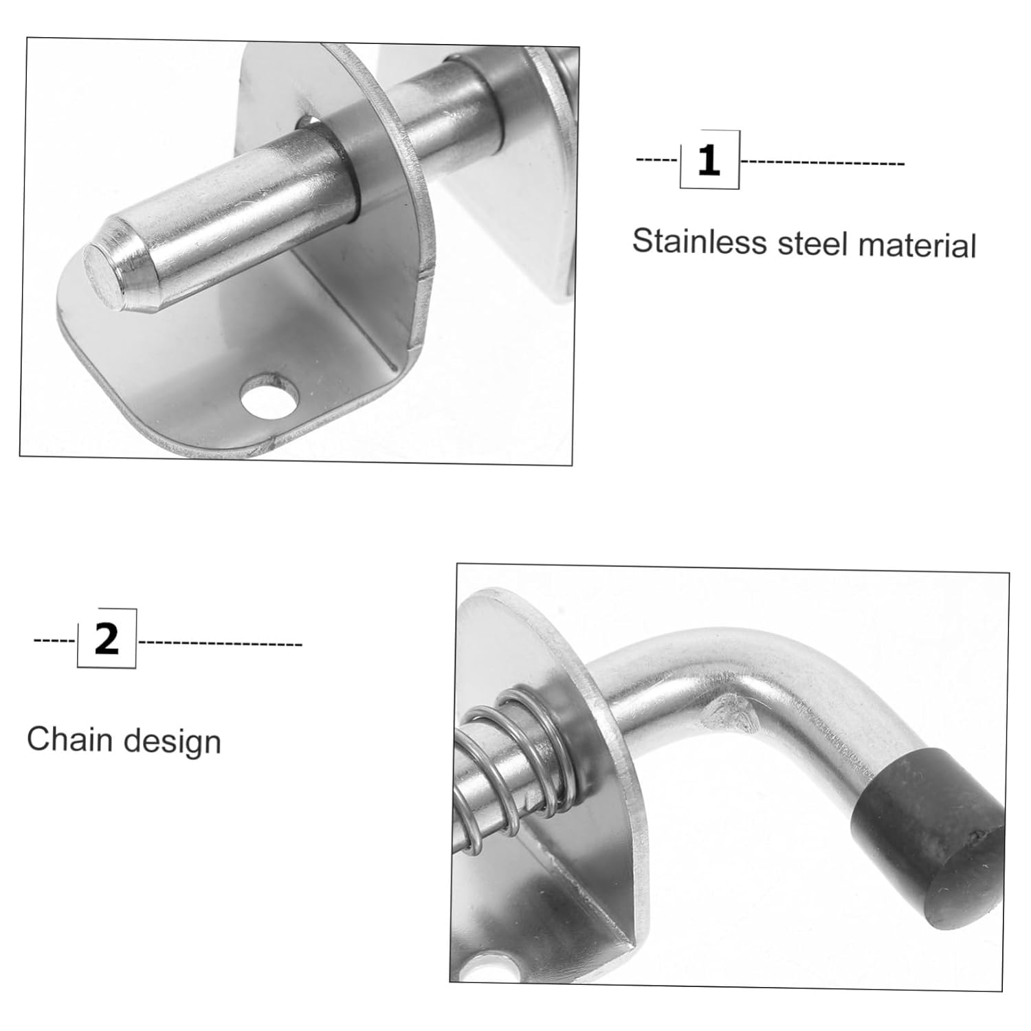 Package Include 4 x Spring Latch Pin Characteristics -Modern design: featuring a clean and modern design, it adds of elegance to your installations while being highly functional farm gate latch -Multiuse: for securing boxes, doors, trucks, containers, cabinets, trailers, barns, wardrobes, and garages, offering multiple uses fence gate lock -Material:Stainless Steel garage door lock -Adaptable: suitable for a wide range of doors and windows, this latch is adaptable to various security needs barrel latch -Size:12.80X4.70X3.00cm/5.03X1.85X1.18in spring gate latch -Color:Silver pin latches -Convenient operation: the spring pin latch mechanism ensures easy and convenient operation, ideal for frequent use spring lock -Robust security: equipped with a lock latch, it delivers robust security for your belongings, preventing theft door slide lockGoods Descriptioncabinet door latch Installation is , and the spring mechanism ensures that the latch remains engaged until you manually release it, providing peace of mind and security for your belongings.cabinet latch locks The spring latch lock is a versatile and practical solution for securing various types of doors, including cabinet doors and sliding doors.fence door latch Made from stainless steel, this latch offers excellent resistance to rust and corrosion