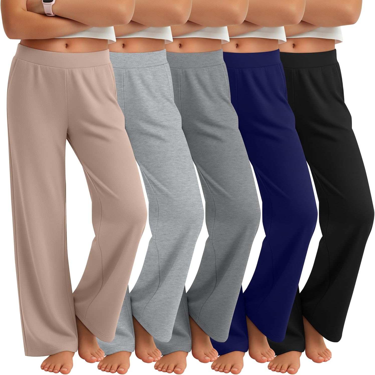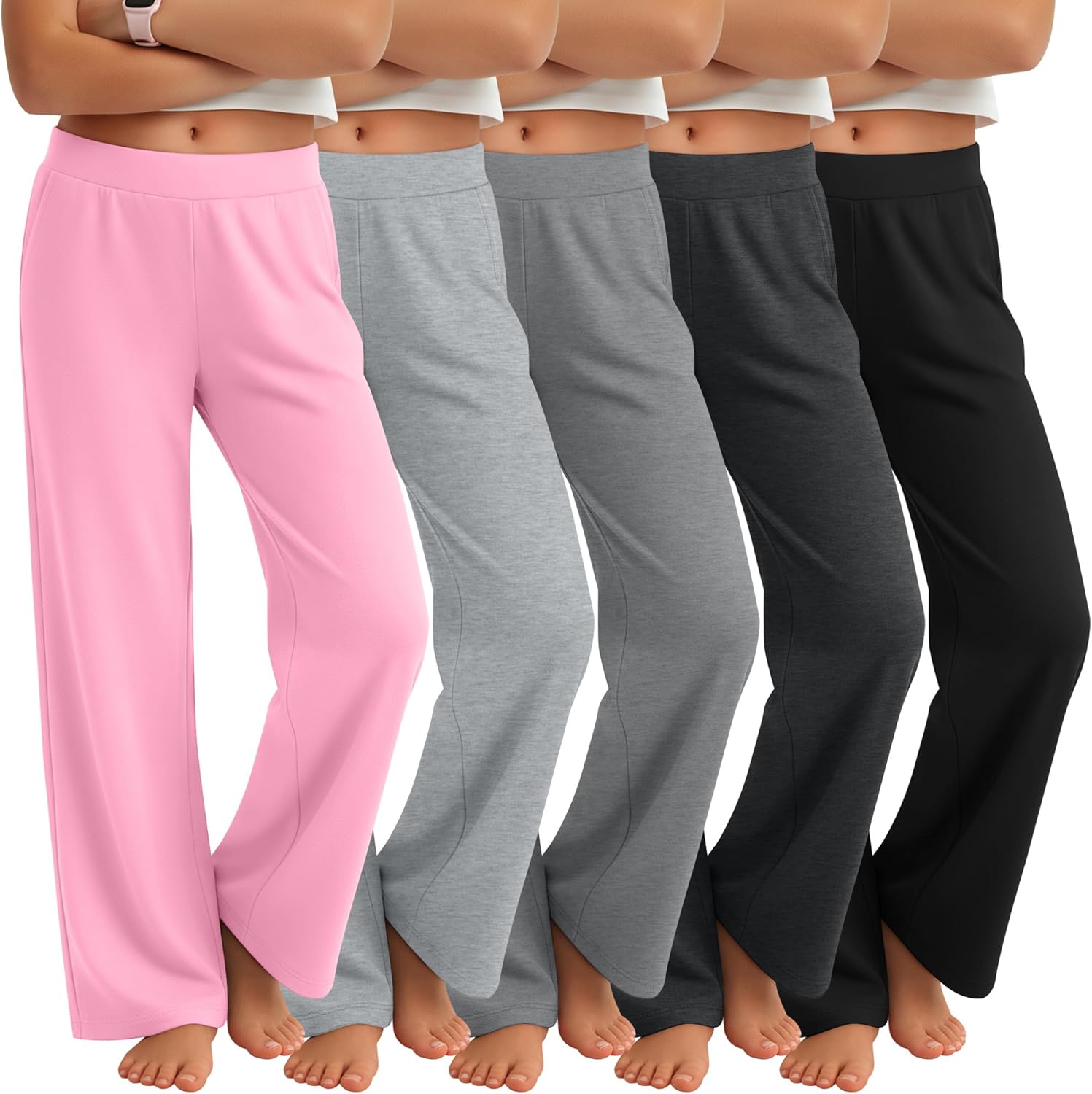 Features: Multiple Colors to Choose: These casual sweatpants offer a loose, comfy fit with a full range of sizes and multiple colors to choose from. Value multi-pack options make them budget-friendly. Nice present for women: The girls' baggy sweatpants are suitable for girls ages 5–16, making it a ideal present for daughters, granddaughters, sisters, or friends. Specifications: Material: 60%Polyester, 35%Cotton, 5%Spandex Package includes: 5 x girls' wide leg sweatpants Notes: Manual measurement, please allow slight errors on size. The color may exist a slight difference due to different screen display. Check the size chart before purchasing, it would help you find a more accurate size for yourself. Hand/machine wash in gentle with cold water, put them in laundry bag if you use the machine washing, in case the drawstring to be snagged, hang to dry or line dry, do not bleach, warm iron if needed, wash dark colors separately