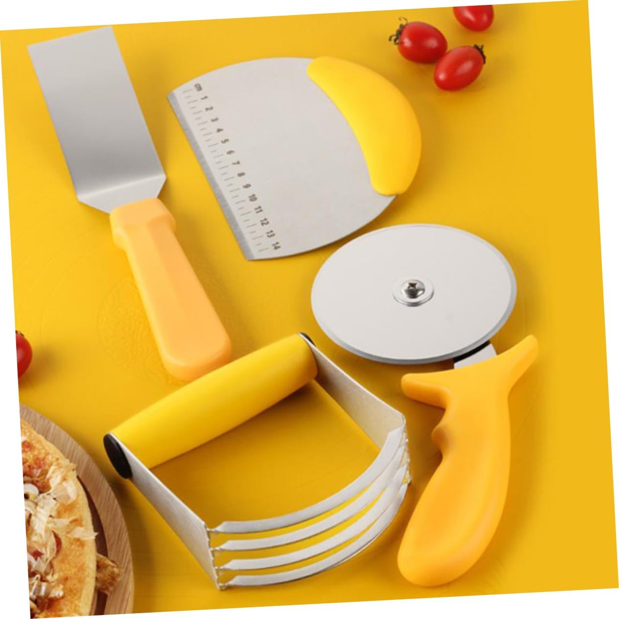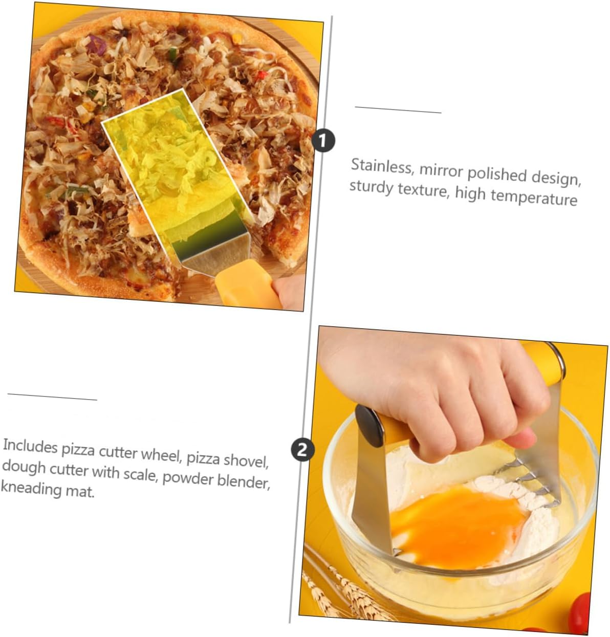 Package Include 5 baking tools Features - Material: Stainless Steel, silicone, PP, nylon pizza turner. - Color: Yellow pizza dough docker. - Size: About 50.00X40.00X0.30cm/19.65X15.72X0.12inch pizza dough roller - Great for cutting dough, sectioning crusts, scraping baking sheets, chopping veggies and more pizza making accessories. - Can be used to make DIY cakes, fun and , reusable and dough docker. - A great set of baking tools for friends who love baking pizza dough press. - Manufactured with for and use.. - The dough cutter with the measure scale, you can precisely measure while cooking.Goods Descriptionpizza dough roller Made of stainless steel, and use.pizza turner It is to use in the restaurants, food shops, catering as well as griddle grill accessories for your home kitchen or backyard barbecue.pizza making accessories The ergonomic and comfortable design for easy holding