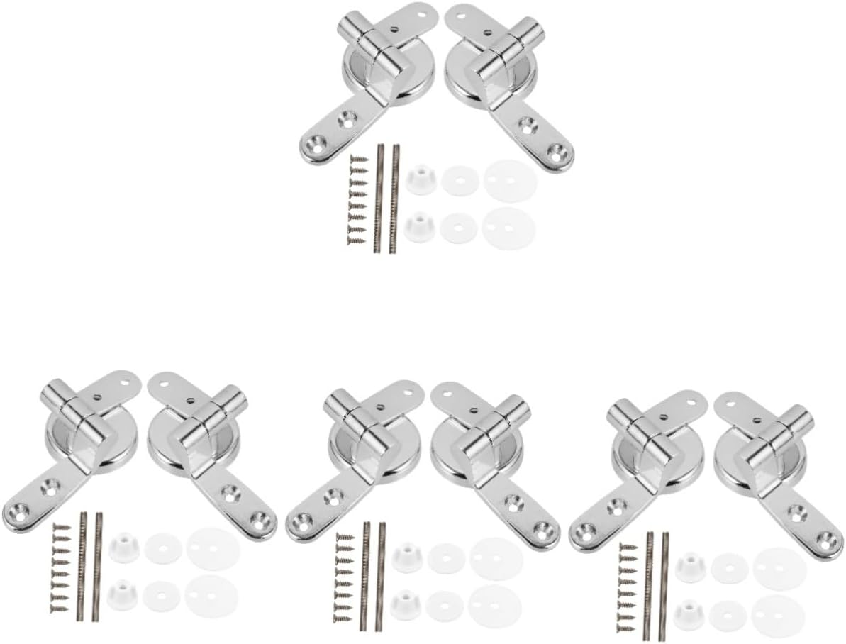 Package Include 5 x set of toilet seat hinges Characteristics -Material:Zinc alloy Seat Hinge -Color:silver toilet cover hinges -Size(screw rod):8.00X0.50X0.50cm/3.14X0.20X0.20in replacement -Size(hinge):9.50X4.00X3.00cm/3.73X1.57X1.18in Toilet Seat Hinge Fitting - Made of zinc alloy materials, more and sturdy, to break Fittings. - Fine workmanship and creative appearance ensure its popularity and practicality toilet hinge fittings. - It has a simple design, but very in use and , performance Toilet Seat Fixing Fitting Kit. - Easy to install and remove, it's your toilet replacement parts potty. - The meticulous craftsmanship and attention to detail ensure a comfortable and pleasant user experience Toilet Seat Hinge.Goods InformationToilet Seat Fixing Hinge Made from zinc alloy material, this hinge is built to last and is to .Toilet Hinge The hinge design prevents any harsh impact and reduces noise, creating a serene bathroom environment.Toilet Lid Hinge Enhance your bathroom with the Zinc Alloy Toilet Seat Hinge.Toilet Cover Fitting With its simple installation process and compatibility with a wide range of toilet seats, this hinge is suitable for various bathroom setups
