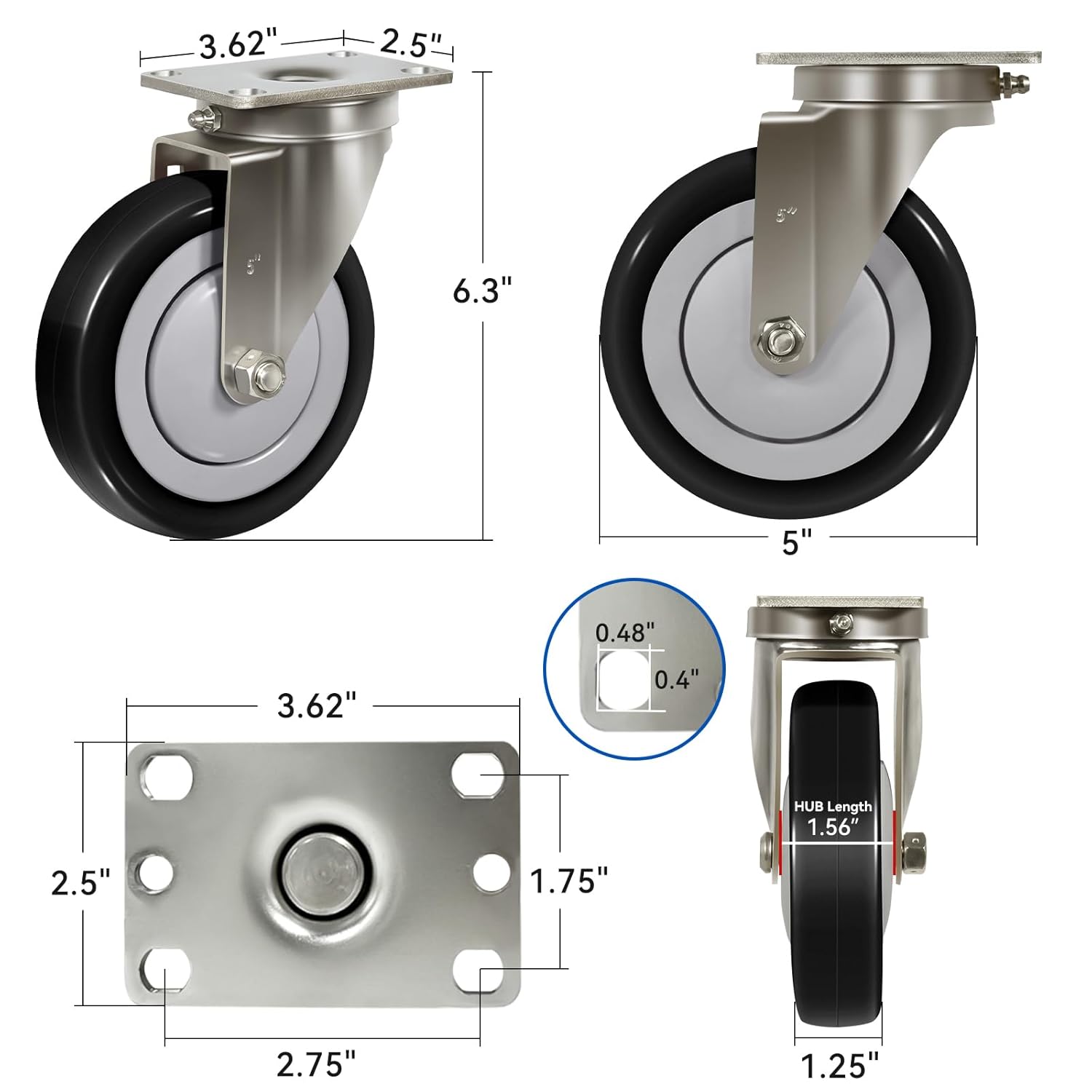 | Material Type | Stainless Steel, Polyurethane |