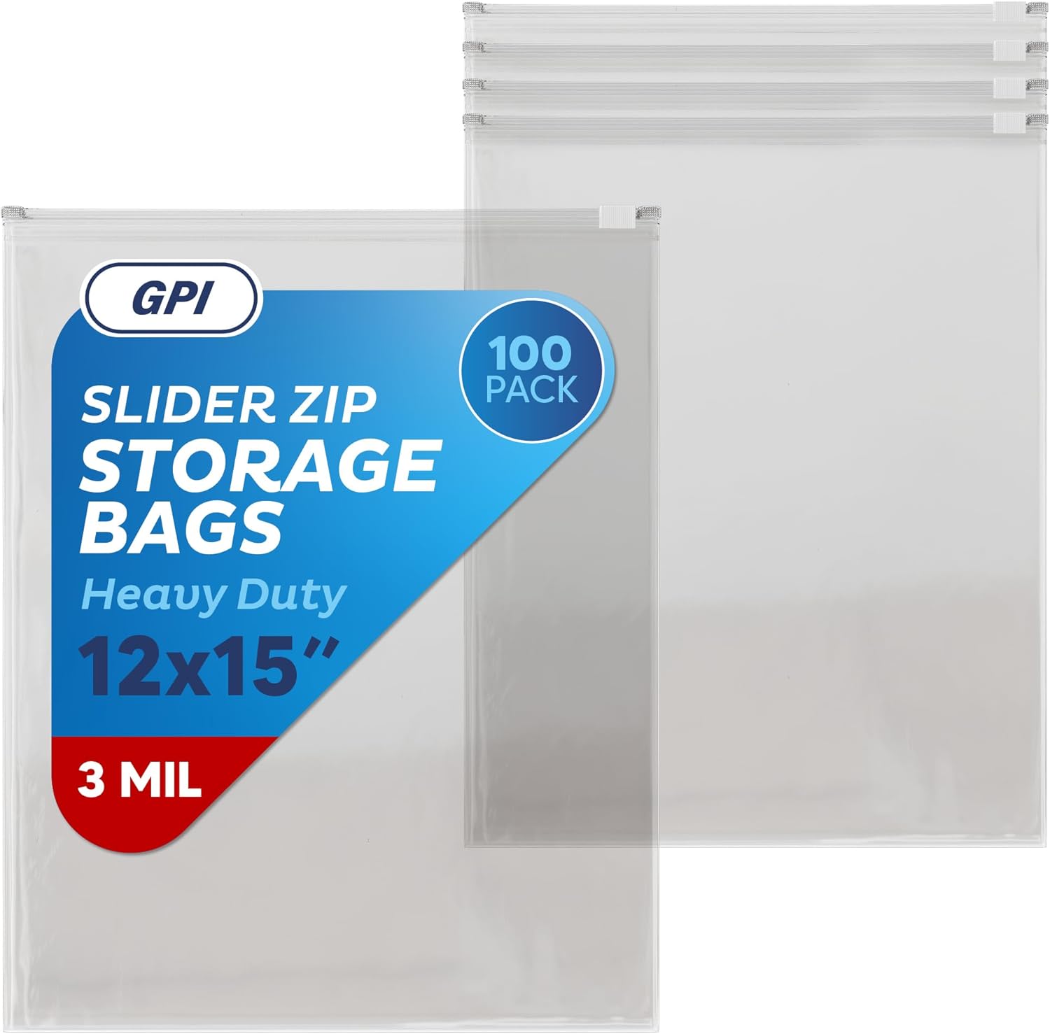 50 Count - Slider Zip 2.5 Gallon Jumbo Food Storage Bags, 13" x 18" 3 Mil Heavy Duty, Extra Large, Strong & Durable For Freezer Storage. GPI