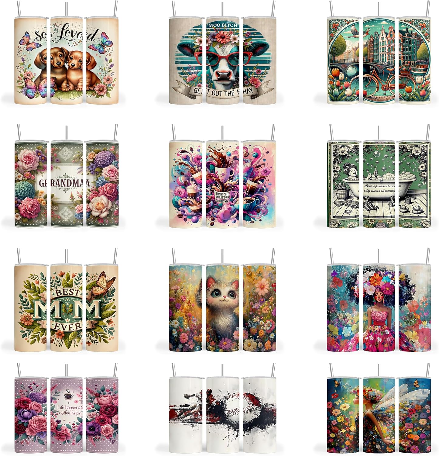 New Improved Designs. Our 50 pc. Bundle Variety Pack is a crafting enthusiast's dream come true, with everything you need conveniently packaged in one set, the possibilities are limitless. At the heart of this bundle are our Tumbler Sublimation Wraps, whether you prefer the classic 20 oz straight tumbler or the sleek design of a skinny tumbler, our wraps ensure that your designs adhere flawlessly, resulting in professional-quality finishes every time. Complementing the wraps are our Tumbler Transfers, meticulously crafted to deliver vibrant and durable designs with minimal effort. Each transfer is prepped and ready to press, eliminating the need for time-consuming design processes and allowing you to dive straight into the crafting fun. With our Ready to Press Sublimation Transfers, you can skip the guesswork and get straight to the creative magic. Whether you're a seasoned crafter or a novice enthusiast, our transfers make it easy to achieve professional results with every press. With 50 pieces included in the bundle, there's no shortage of inspiration to fuel your creativity. Whether you're personalizing tumblers for yourself, creating gifts for loved ones, or even starting your own small business, our bundle has you covered. In summary, our 50 pc. Bundle Variety Pack is more than just a collection; it's a gateway to endless creative possibilities. So why wait? Unleash your imagination and transform ordinary tumblers into extraordinary works of art with our versatile and convenient bundle.