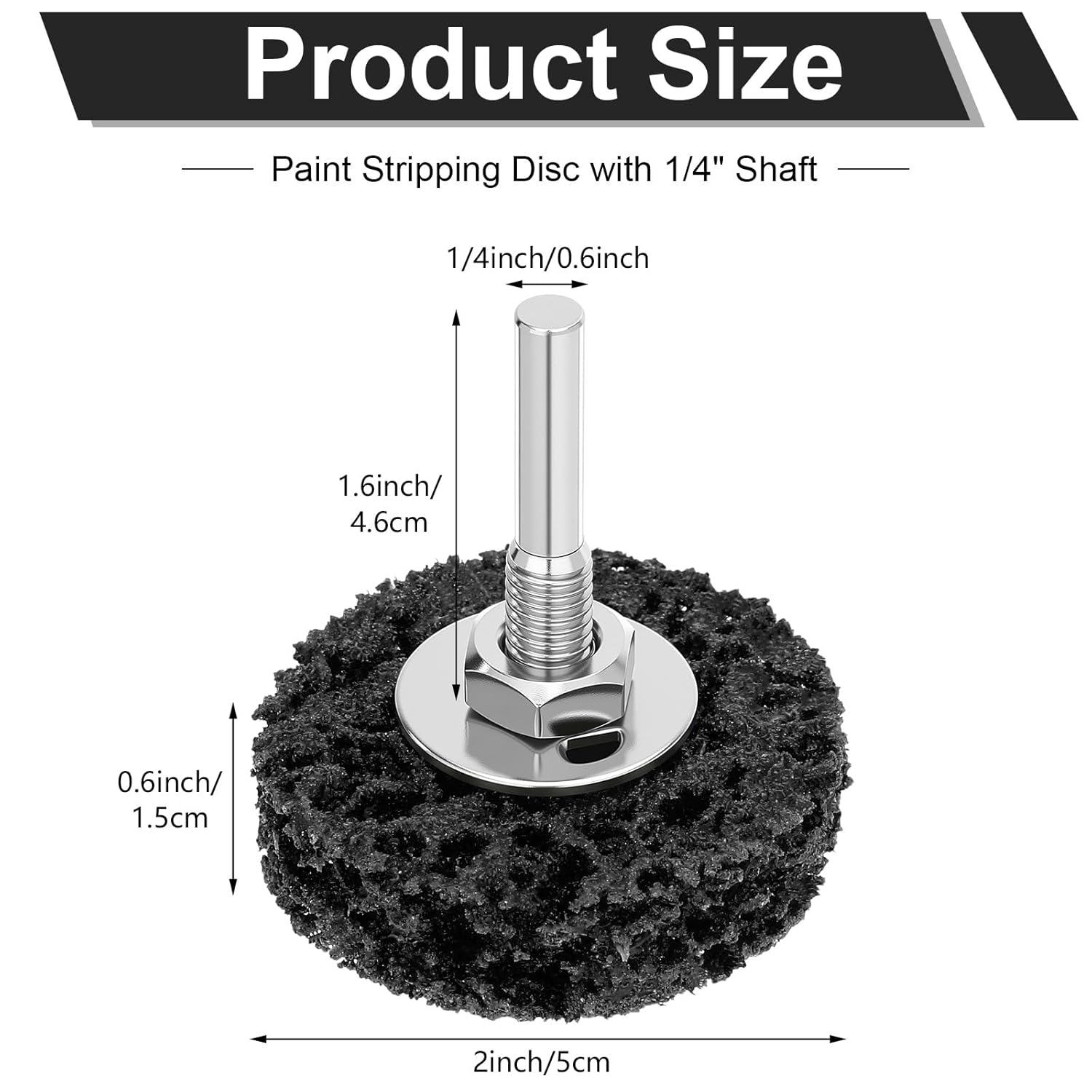 Features: Long-Lasting Value Pack: Each paint stripping wheel delivers 50+ stripping cycles equivalent to 10 sandpaper sheets. This 50-pack set ensures continuous workflow for commercial shops and large projects, eliminating frequent restocking needs for auto body shops or metal workshops. Reliable Performance: Engineered for demanding surface preparation, these stripping discs deliver reliable results for both professionals and skilled DIYers. The balanced design ensures smooth operation when removing automotive paint, refinishing furniture, or prepping metal surfaces. Specifications: Size: 2 inches in diameter and 0.6 inches thick Material: nylon Color: black Package Included: 50 x Paint Stripping Discs Warm notes: Please confirm the size of your power tool before purchasing. The color may slightly differ due to different screen displays