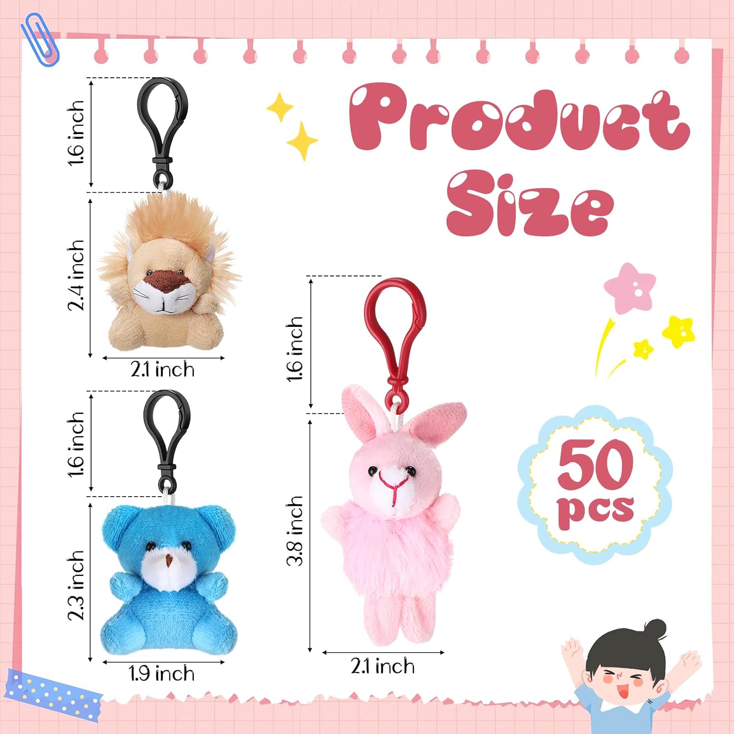 Warm Reminder Due to vacuum packaging, please place these mini plush toys in a dryer for 5-8 minutes after receiving it, or wash it and then blow-dry it with a hair dryer to restore its fluffy. Fun Classroom Rewards Inspire good behavior and reward achievements in the classroom with these charming mini plush toys. Teachers can use them as prizes for students who show exceptional effort, and kids will love to collect their favorite animal characters as a fun reward for their hard work and dedication. Ideal for Themed Parties and Events: These bulk mini animal plush keychains are ideal for a variety of themed events such as forest animal parties, zoo-themed birthdays, or nature-related celebrations. With a mix of animals like lions, elephants, and bears, they can be used as both party favors and decorations, adding charm and personality to any event. Specifications: Material: plastic and fabric Color: multicolor Size: 2.36 inches / 6 cm Style: forest animals Package includes: 50 x Mini plush animals toys keychains Notes: Manual measurement, please allow slight errors on size. The color may exist a slight difference due to different screen displays. Suitable for people over 6 years old, and it's recommended to use under the supervision of adults in case of choking risk