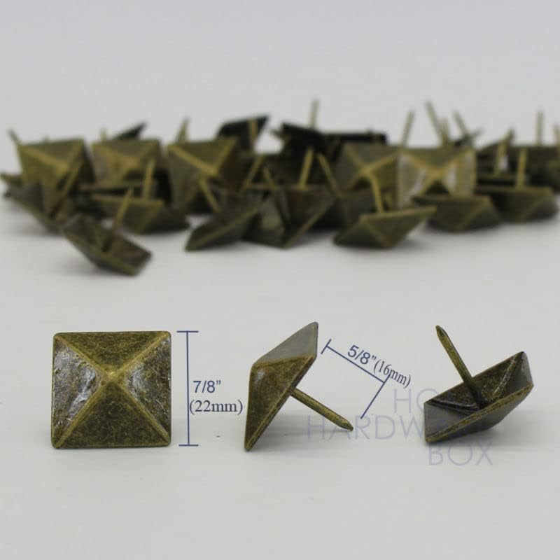 Square Bronze Decorative Nails 22mmMaterial | Steel.Size | Head size 7/8"x7/8 (22x22mm)Color and finishing | bronze colorProduct Features | Pack of 50 pieces.materials for leather crafts and furniture.Other color | Item specifics:Shank diameter: 1.5mmHead diameter: 7/8" 22mmLength: 7/8" 22mmModel number: nalpmcpType: Finishing Nailsupplies: WoodworkingMaterial: SteelCertification: NONEOrigin: Mainland China
