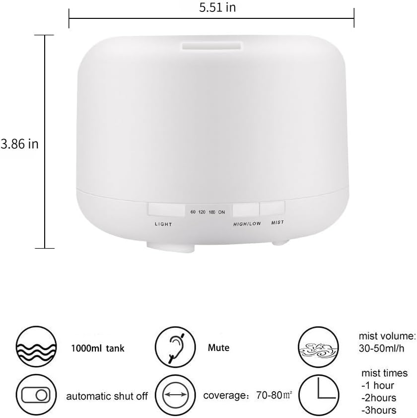 | Additional Features | Automatic Shut-Off, Long Lasting Aroma, Multiple Light Setting, Silent Operation, Timer Setting |
