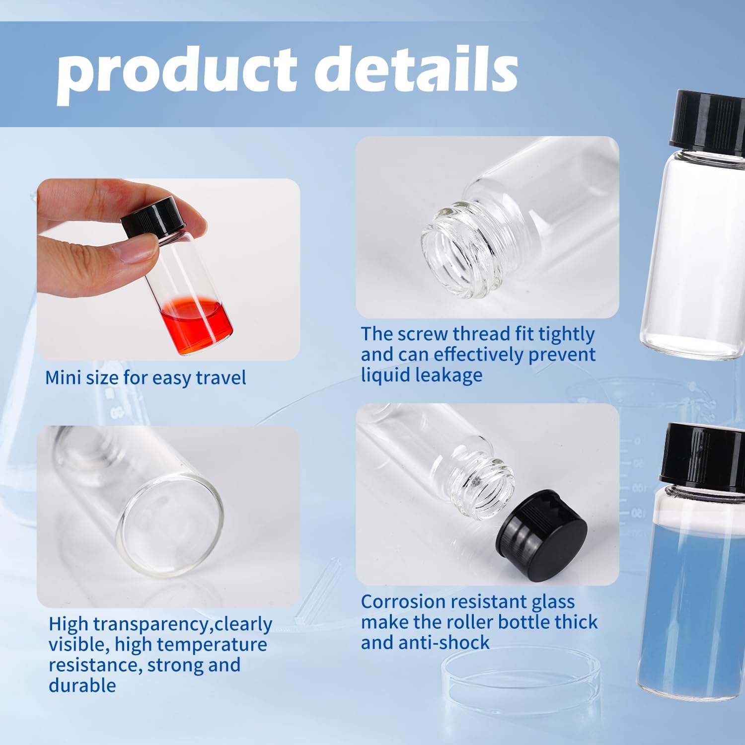 | Included Components | 50ml Clear Glass Vials with Screw Caps 30PCS |