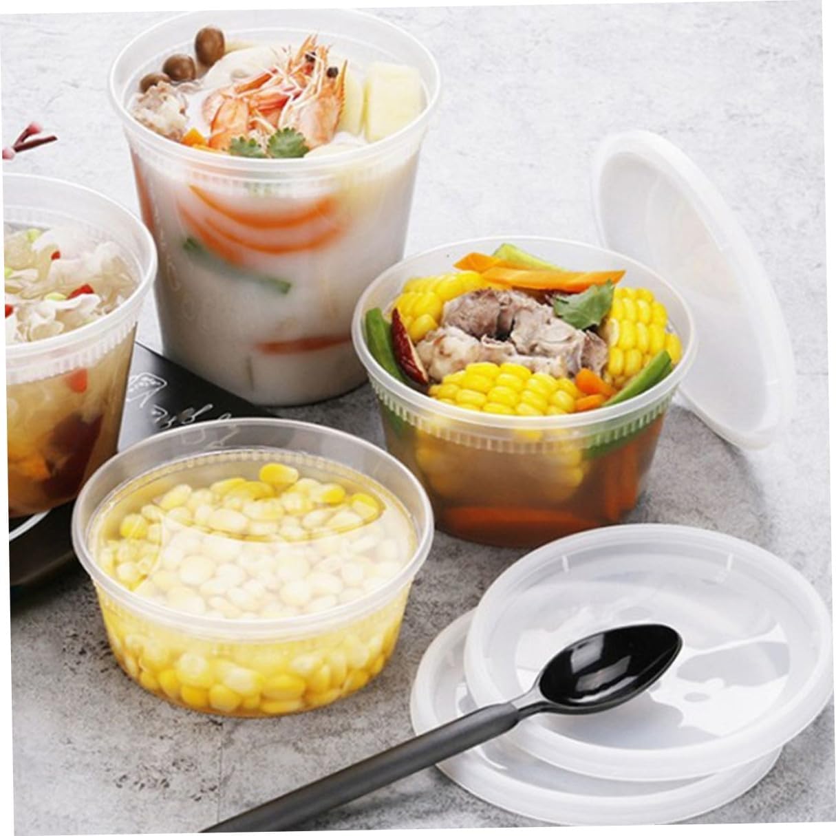Package List 25 x Disposable Soup Cups (32oz) 25 x Disposable Soup Cups (16oz) Characteristics -Color:White -Material:PP -Product Info:Temperature-resistant packing bowl -Size:11.68X11.68X7.62cm/4.59X4.59X2.99in (16oz) -Size:14.22X11.68X11.68cm/5.59X4.59X4.59in (32oz) - Each of the cup has a lid, more convenience to use. Disposable food cups, you can throw it after use clear cups with lids. - They're an for soup, stews, sorbet, desserts, leftovers, takeout, and so much more Practical Take-out Soup Cups. - Wonderful for home, birthday, banquet dinner, engagement party, weddings, holiday, etc large bowl with lid. - It has a simple design, but very practical in use, giving you a food containers with lids. - Large capacity, oil proof, good sealing, you won't have to worry about leaks with these cups soup bowls with lids.Goods Descriptionsoup bowls with lids If you are looking for a convenient and reasonably design food packing cup, then your research is here.soup cups with lids Using PP materials, not easy to deform, which brings you of convenience.soup container That's because our soup containers can meet your needs