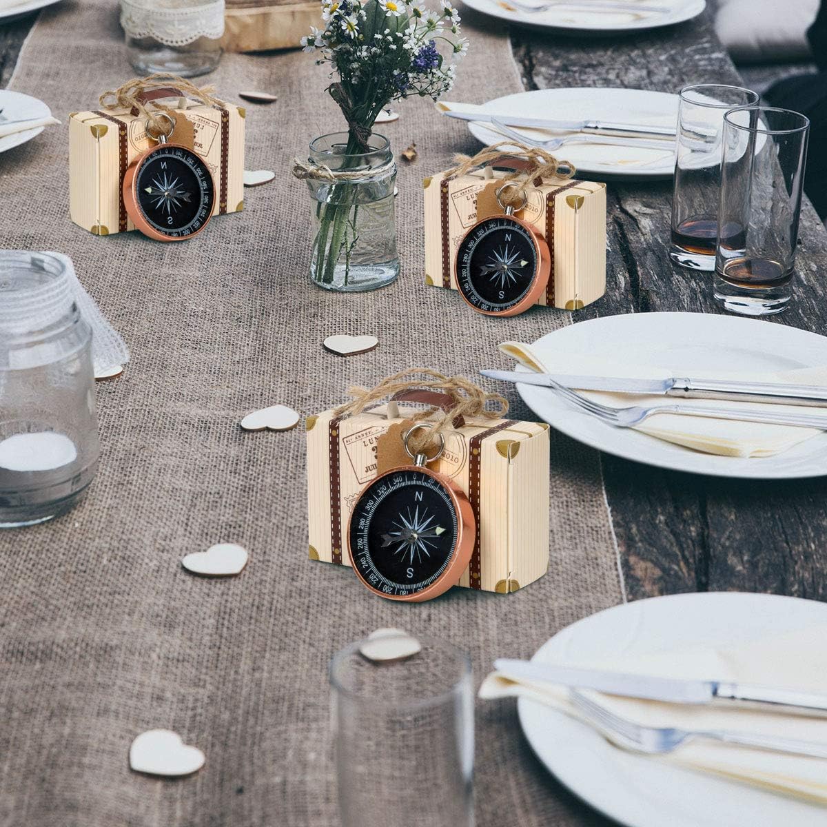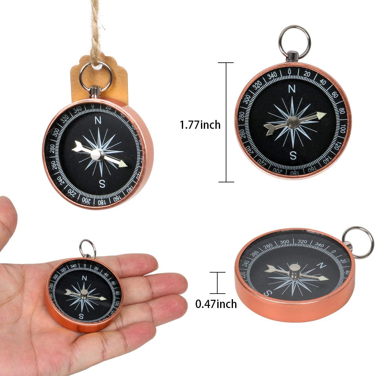 Specifications: Material: Aluminum alloy/Craft Paper Color: Black+Gold Package Included: 50 X Wedding Candy Boxes 50 X Hemp Ropes 50 x Compass Shaped Hanging Decor Note: Due to the difference between different monitors,the pictures may not reflect the actual color of the item. Applications: These compass party favors will add unique factor to your travel themed or nautical themed party. They are perfect for birthday, baby shower, wedding, bridal shower, graduation, Aniversary, baby 1st birthday party and Christmas.