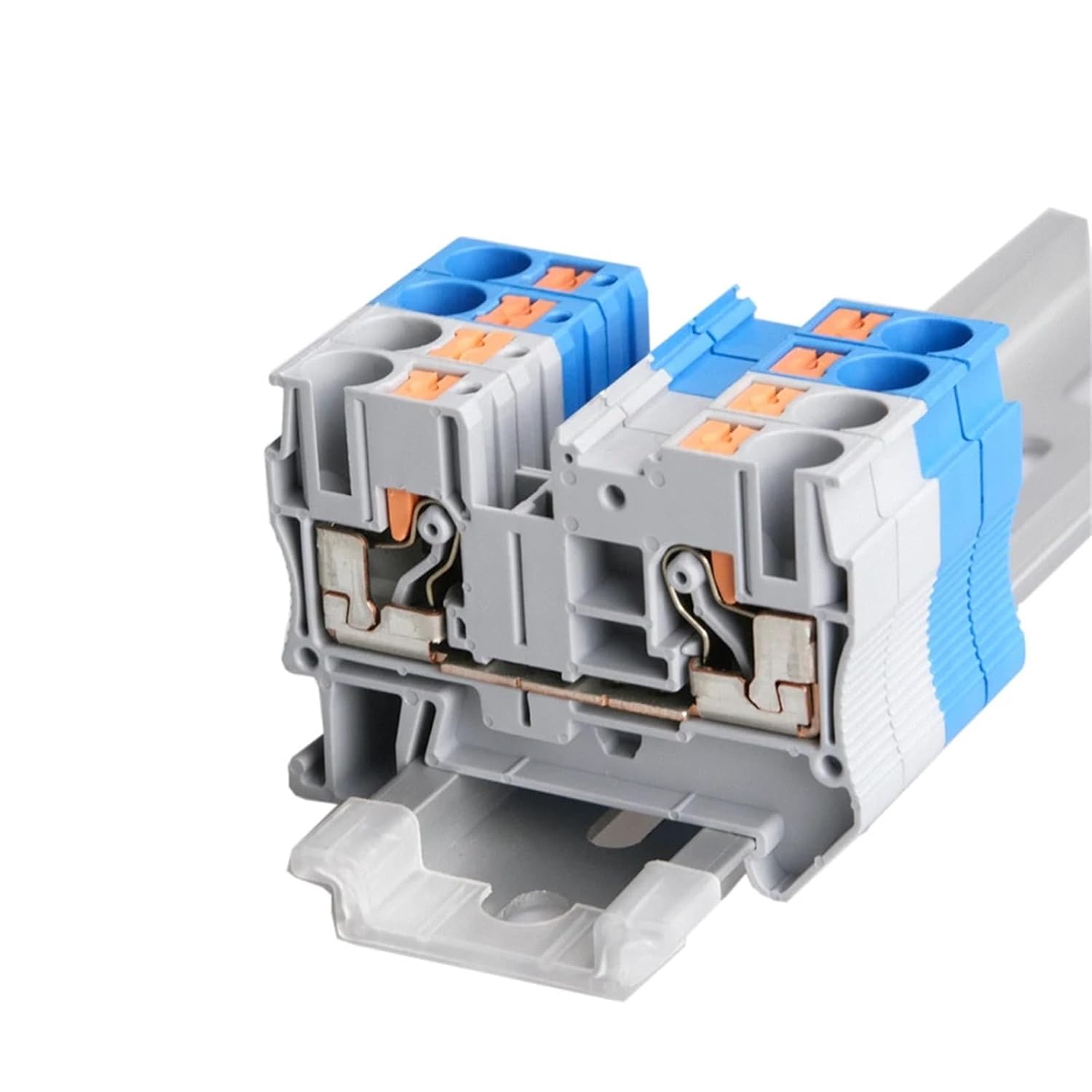 Terminal Blocks==========Hign-concerned Chemical : NoneConductor Size : 20-8AWGNumber of Contacts : 1 - 10Model Number : PT-6Type : SpringUsage : Electrical WiringApplication : Distribution Cabinet/panelConnection Method : Push inMounting Type : Din RailSize : 57.7/43.5/8.2mmCross section solid cable : 0.5-10mm2Cross section soft cable : 0.5-6mm2Current : 57AVoltage : 1000V