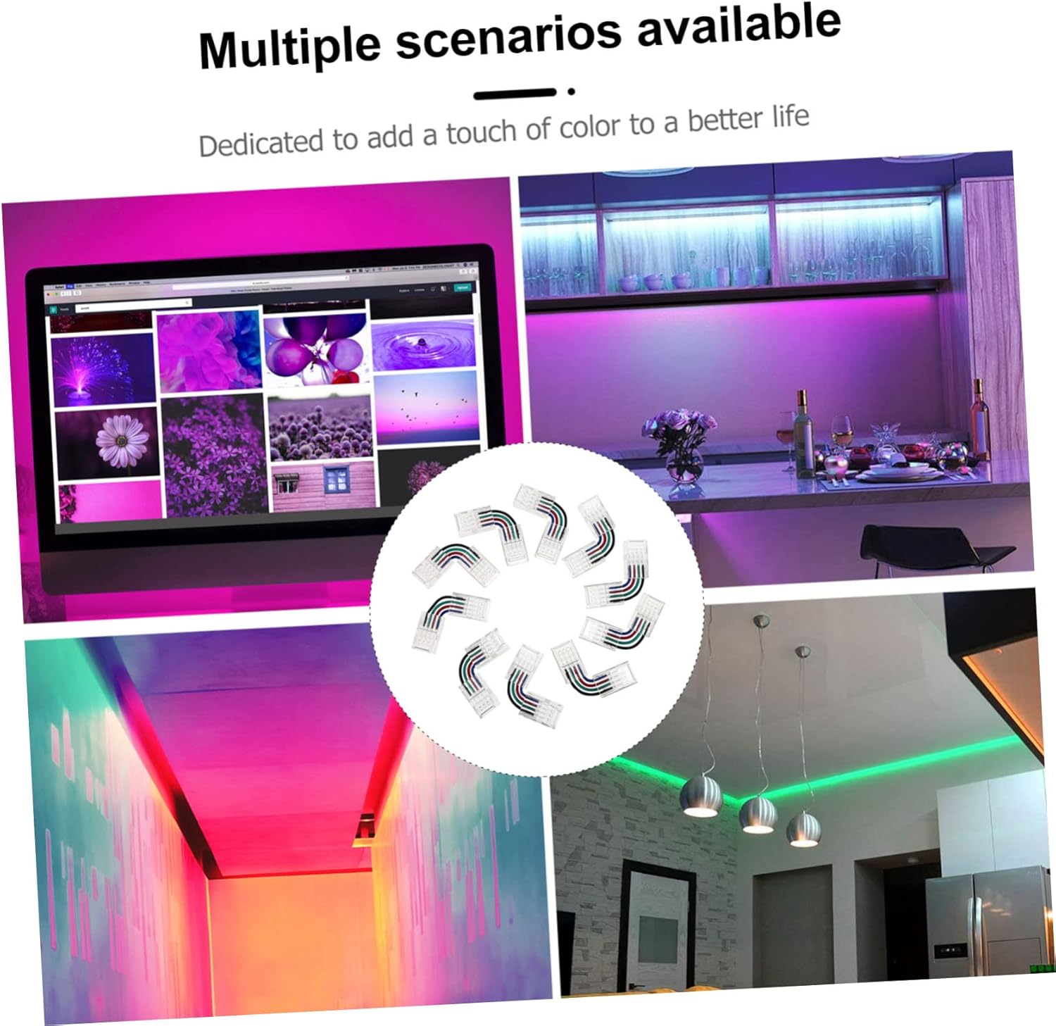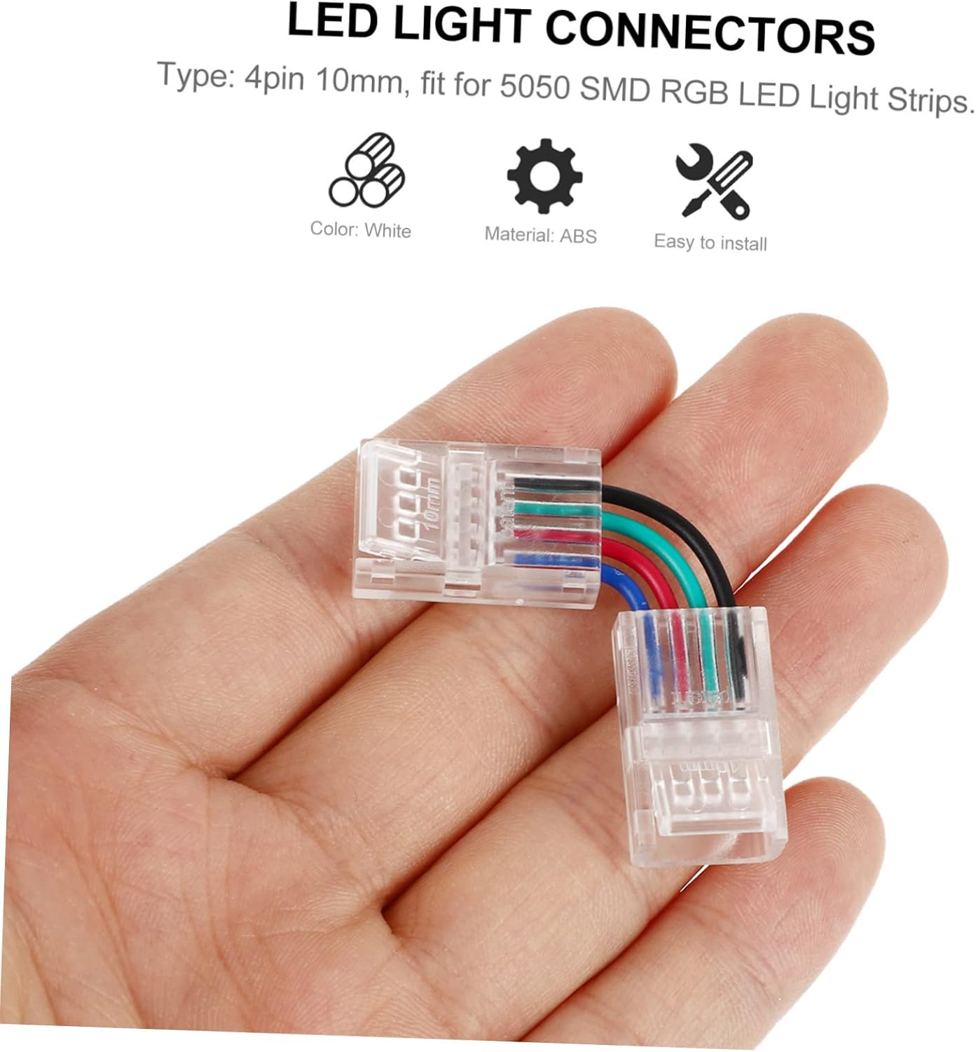 Package Include LED Connectors Characteristics -Material: ABS LED connector. -Color: White LED strip light adapter. -Type: 10mm, fit for 5050 SMD RGB LED Light Strips LED light strip connectors. -Size: About 2.00X2.00X1.00cm/0.79X0.79X0.39in LED strip adapter. - With compact shape, lightweight and portable, take up no space and you can put it anywhere rgb connector. - Simple to install, solerless, just slide the light strip under the connector's pin LED connectors for strip lights. - L shape 4-pin LED connectors is 10mm wide design, solderless, fit for 5050 smd rgb LED light strips LED strip connector. - LED flexible strip lights connectors, whether it is a waterproof one for indoor or outdoor use strip light adapter. - Sufficient quantity can meet your various demands and replacement, and you can share them with your friends and family LED adapter.Goods DescriptionLED strip connector They are designed to facilitate the connection of your light strip.strip light adapter Made with excellent craftsmanship, light and , easy to install, can well meet your needs and serve you.adapter for LED strip a tool for you to choose.LED light strip connectors They have reasonable design and practical functions.LED adapter These LED connectors are made of ABS materials