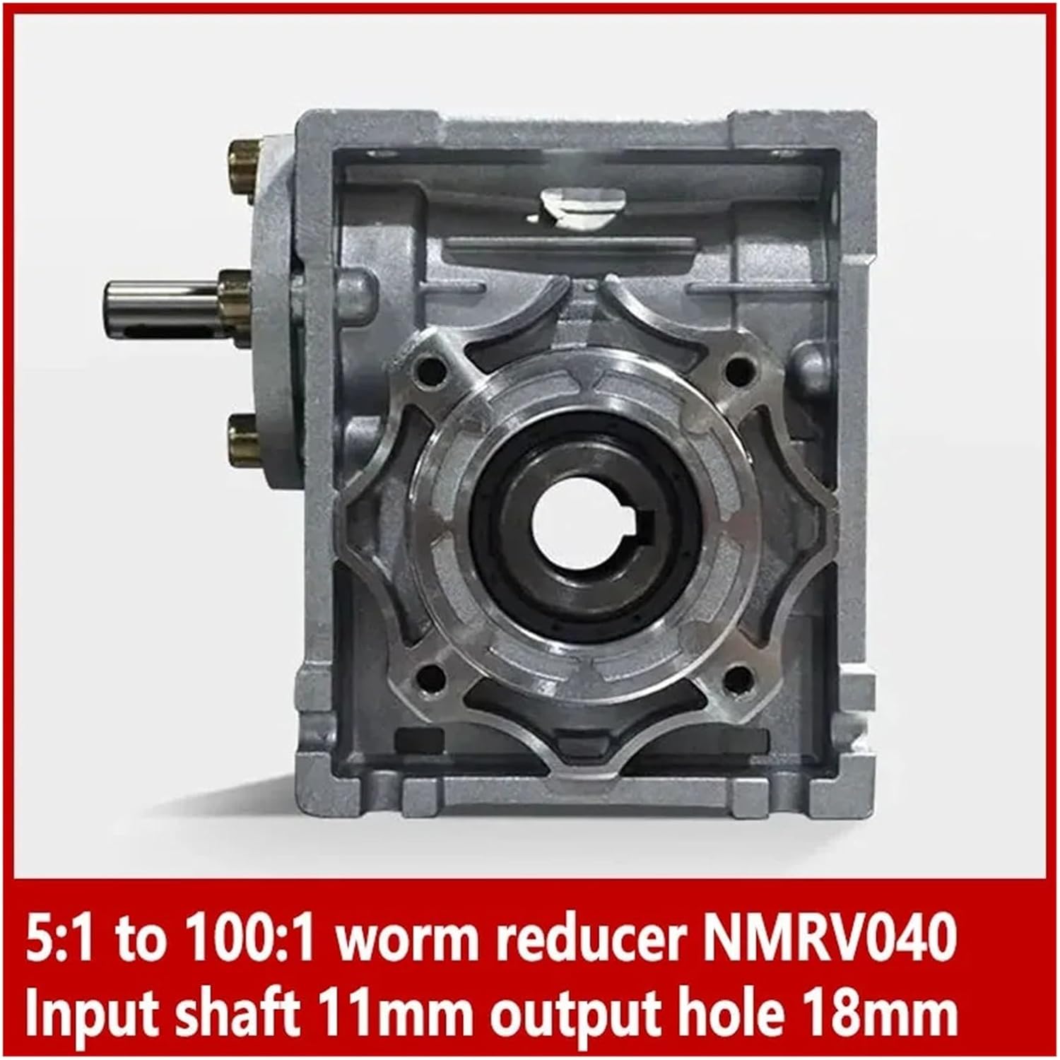 5:1 to 100:1 Worm Reducer NMRV040 Shaft Input Worm Gear Reducer RV40 Input shaft 11mm output hole 18mm worm gear hand crank reducerWorm Gear Reducer*1PCNote:With ratio of 5:1, 7.5: 1, 10: 1, 15: 1, 20: 1, 25: 1, 30:1, 40: 1, 50: 1, 60: 1, 80: 1 for customers. Color: silver and blue (Sometimes only one color is available)This is a worm gearbox connection without an output shaft, if necessary, please contact us.We have 2 output hole diameters (18mm and 19mm), please note the diameter of the output hole you need when ordering.We also have NMRV 25/30/50/63/75/90 Models, if need, contact us please.Color:silver and blue (sometimes just one color)Material for worm reducer:housing:aluminum alloy die castWorm gear:Nodular cast iron and bronzeThe structure of the NRV040worm reducer:We also have worm reducerparts such asoutput shft, torque arm and output flange,If you need to contact us to buy:NMRV40 Dual or Single output shaft:Torsion arm :NMRV40 Output flangeThe production line and stock view:Output Power : 74.6-735(include735)Torque : 11N.m-53 N.mModel Number : NMRV40/RV40Origin : Mainland ChinaOutput Voltage : 0.06Kw-0.37KWInput Speed about : 1500rpmOutput Speed : Varies with changes in speed ratiooutput hole diameter : 18mm