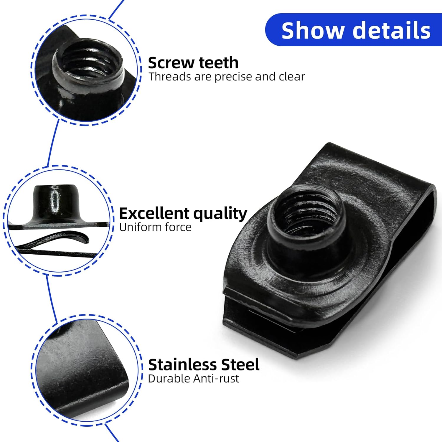 5/16"-18 U Clip On Nut, Black Extruded U Nuts Clip Carbon Steel, 15 Pcs U Style Fastener Clip for Automotive Dash Door Panel Interior(15 Pack)