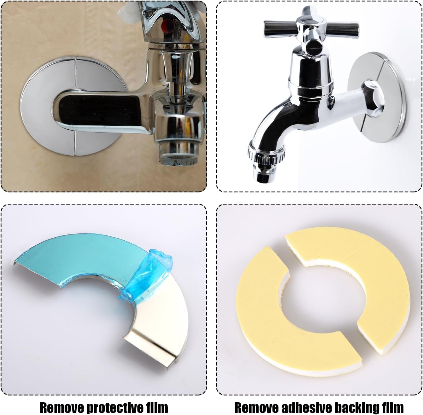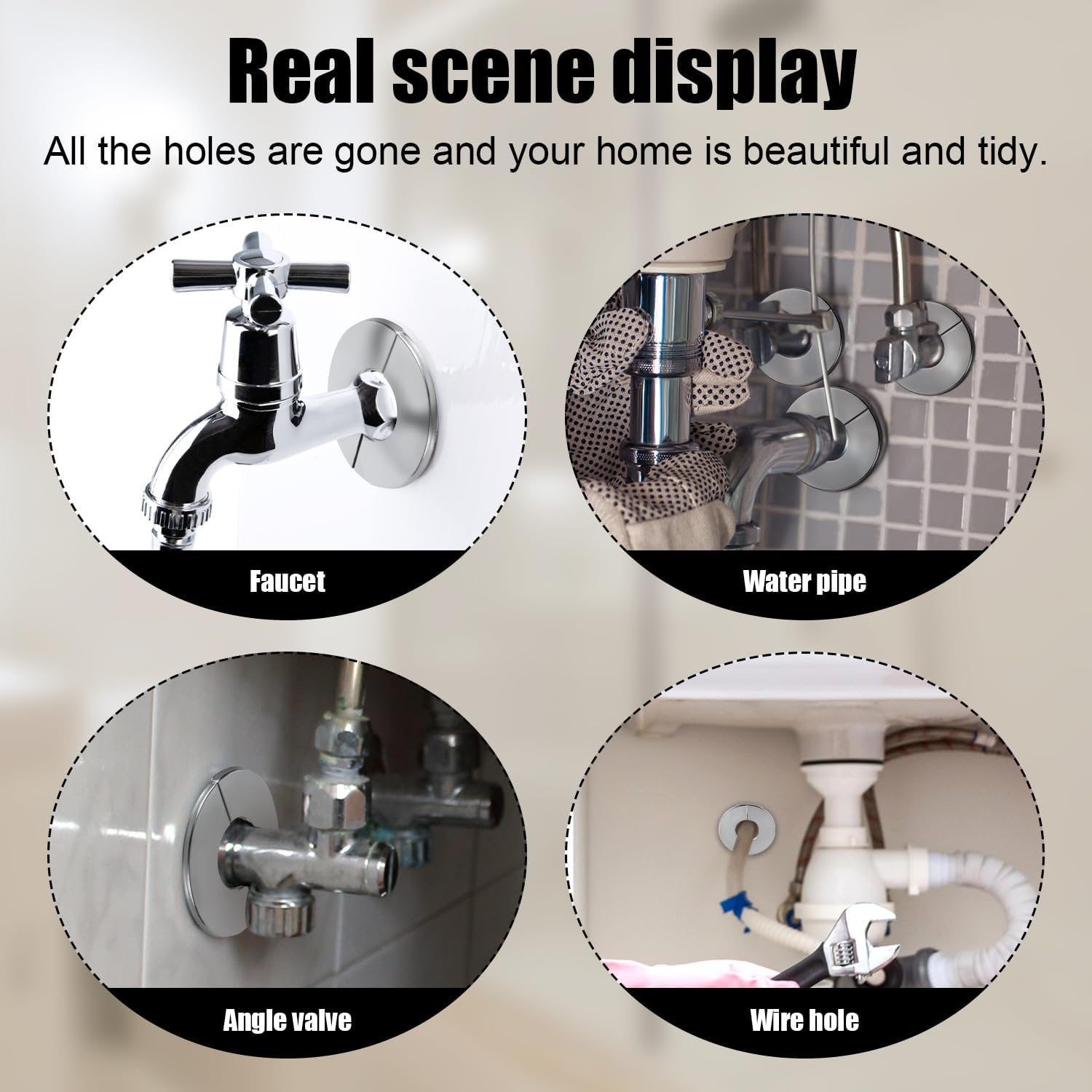 Specification: Color: silver Material: stainless steel Product Size: outer diameter: 6.7cm/2.64 inch; inner diameter: 3cm/1.18 inch Package details: 5 x water pipe cover 1 x sealing tape Note: Due to manual measurement, the size and weight may have a certain error. Due to the difference between different monitors, there may be a slight color difference existed.