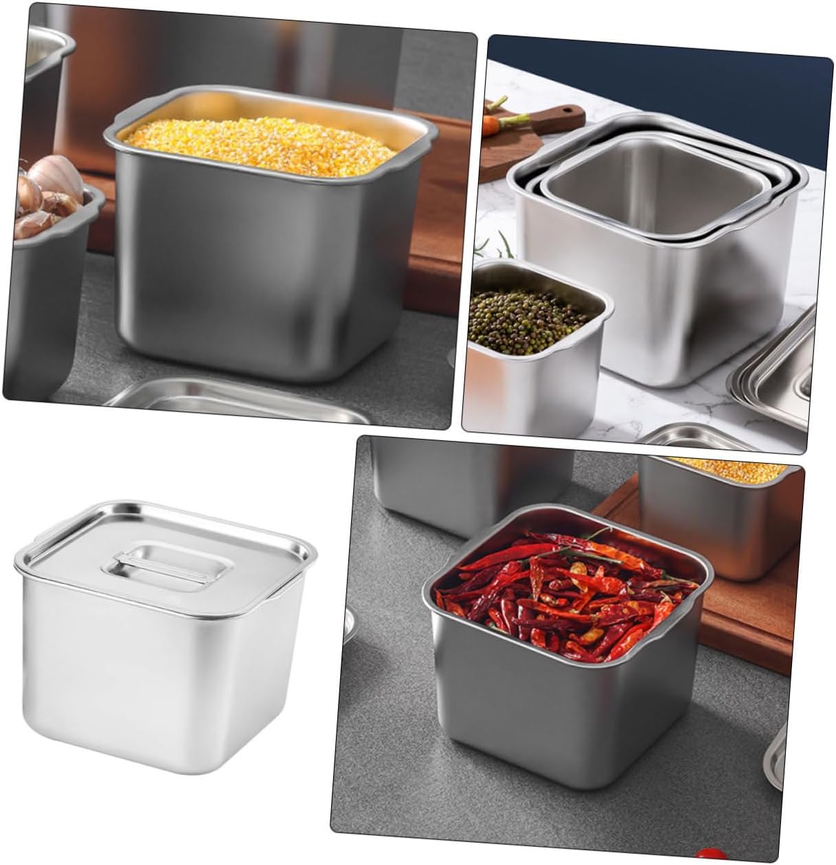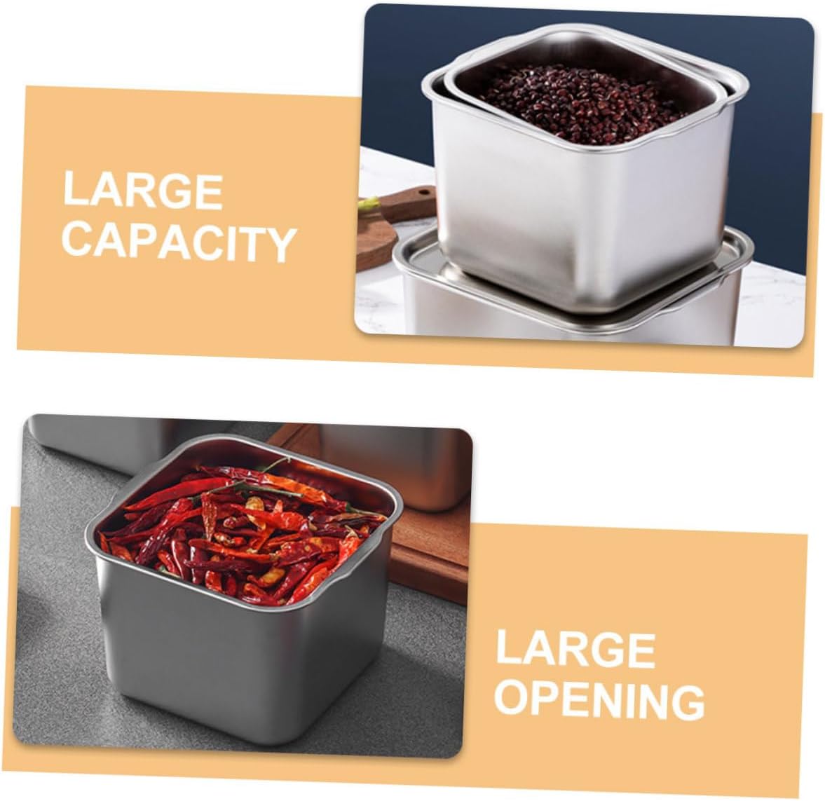 Package List 5 x Condiment Pot Features - Color: Silver spice container - Size: 14.00X14.00X11.50cm/5.50X5.50X4.52in versatile seasoning pot -Material:Stainless steel condiment case -Made of stainless steel material, and strong, the storage jar can serve for a long time kitchen spice box. - craftsmanship, stylish and charming, large opening, and easy access and operate, also easy to clean household condiment storage pot. -Design with lid, the product is clean and . And the handle design is easy to take up the lid spice seasoning pot. -Can help you better store and organize kitchen spices by the large capacity, making it more convenient for you to use stainless steel storage jar. -Can help you organize your countertops and seasonings better, make your kitchen look clean and tidy kitchen condiment jar.Goods Informationcondiment dispenser jar With its simple design, it is very and portable, easy to clean.seasoning storage jar daily use and special occasions.kitchen condiment jar This is a seasoning jar, made of stainless steel materials for to use.spice container You can use it to store condiments, spices, etc by the large capacity to fit your needs