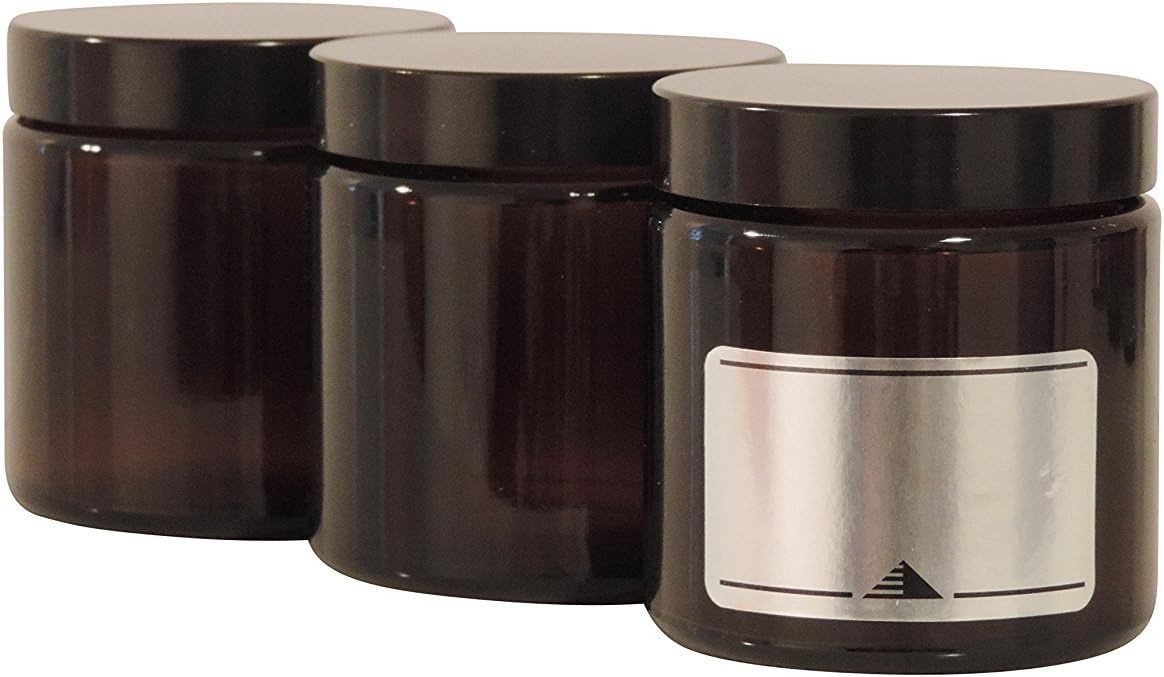 Product Description 6 brown glass jars, 120 ml, ointment jars, cream jars, spice jars made of brown glass, including labelling labels, glass jar, glass, 6.1 x 6.1 x 6.3 cm, 6 units Set Contains: 6 brown glass jars with black screw top and 6 adhesive labels for labelling.