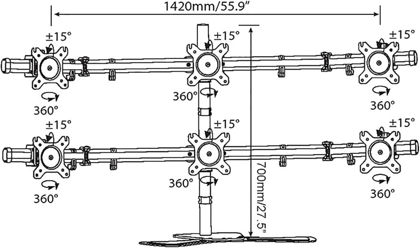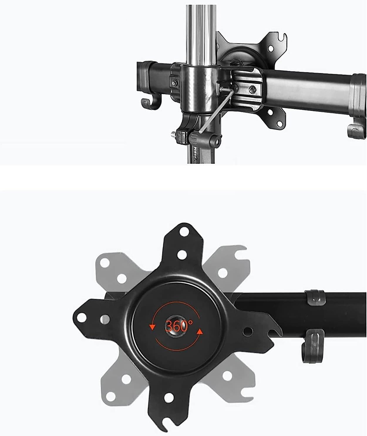 Applicable spaceTV mount is the solution to your limited wall space. for bars, restaurants, fitness centers, grocery stores, and medical offices, home installations and more! CompatibilityThis premium is Suitable for most TVs,Strong bearing capacity. it high-grade of steel and its scratch-resistant powder coat finish provides you the peace of mind that your TV is safely mounted. High-quality after-sales servicethis television stand is made from the highest quality, most steel construction, so you can rest assured your TV is in safe hands and comes with all necessary Hardware. About our products: Please look at this. The following is an introduction to our products. 。Specification:Dimensions: as shownMaterial: cold rolled steel Scope of application: 15-27 inch TVColor: BlackSingle screen load: 5kgRotate left and right: ±45°Pitch angle adjustment: -85°/+90°Whether to switch between horizontal and vertical screens: YesCan the height be adjusted: YesInstallation method: Desktop useAdapted hole distance: Within 100*100mmScope of application: office, living room, balcony, dining room, kitchenPackage Includes:1 x TV Mount 1 x User Manual1 x Mounting Hardware KitReminder: 1. This product is manual measurement, there is an error of 2-3cm, please refer to the actual object received2. This product only includes TV Ceiling Mount and its accessories