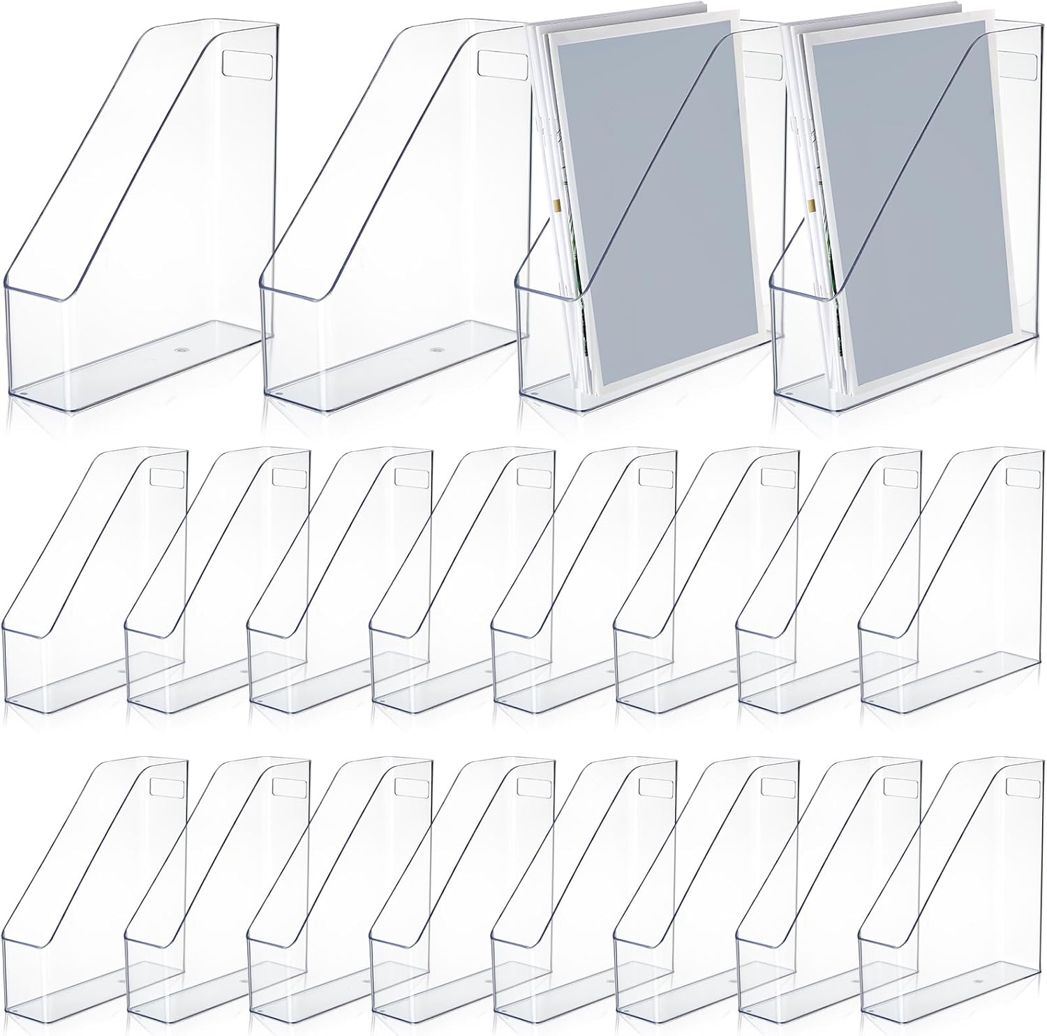• Sturdy and Stable: these magazine file holders are made of acrylic material, reliable and sturdy enough, without pointed corners, and the bottom is equipped with rubber pads to avoid sliding; High transparency and good visibility add elegance and charm to your desktops