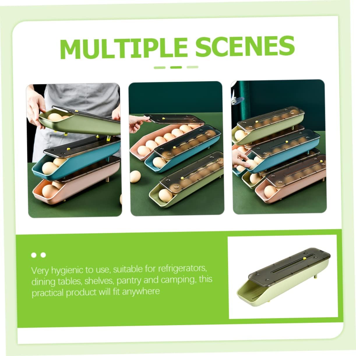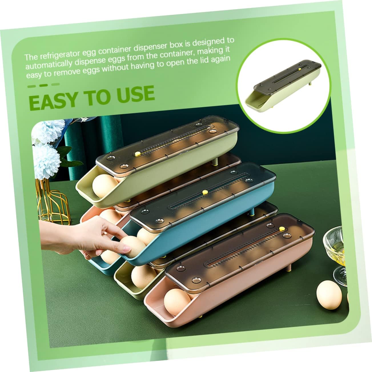 Package List 6 x Egg Holders Characteristics -Size: 33.00X9.20X7.50cm/12.97X3.62X2 egg cartons. -Material: plastic egg holder -Color: Green egg storage drawer box - Slope design storage box with antislip feet, will not tilted and save storage space egg holder for refrigerator. - Frosted flip cover design, easy to refill and know when to refill eggs egg tray for refrigerator. - Stable slots can help to hold eggs in place without rolling all over the place egg drawer for refrigerator. - Egg will roll and fill in the blank automatically, easy to pick out egg without removing the lid egg storage container for refrigerator. - Built-in freshness markers, you can adjust to remind yourself freshness of the eggs egg container for refrigerator. Goods Description Plastic container It is an excellent refrigerator egg storage container that can bring you convenience, allowing you to have a more comfortable experience.plastic trays This product is a refrigerator egg storage container.egg organizer for refrigerator It is safe and durable.plastic serving tray It is made of solid materials.storage drawer It without being easily damaged Fridge egg holder: slope design storage box with antislip feet, will not tilted and save storage space. Storage: the refrigerator egg container dispenser box is designed to automatically dispense eggs from the container, making it easy to remove eggs without having to open the lid again. Automatic rolling egg tray: the stable entry surface prevents eggs from rolling around, and it can be side-by-side or stacked depending on the number of eggs remaining or free space in the refrigerator. 6 Pcs Egg Storage Box Egg Rack for Refrigerator Egg Storage Rack Fridge Drawer Out Egg Container Eggs Egg Cartons Egg Storage Container for Refrigerator Plastic Automatic Egg Tray