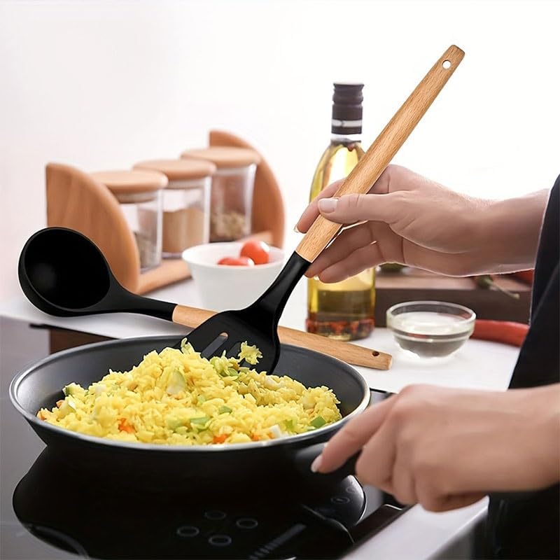 : Spoon and spatula setMaterial: SiliconeSize: As shownColor: As shownFunctions: Cooking, bakingThe set includes: Frying spatula, soup spoon, ladle, salad spoon, etcCrossbody bag:Shovel and spoon set *1 set(Excluding display items)Attention:1. Due to manual measurement, please allow 1-2cm error.Please understand,Thank you2. The actual color of the product may be slightly different from the color shown in the picture. please refer to the actual productInvesting in a handy set of spatulas can significantly enhance the smoothness and enjoyment of cooking.