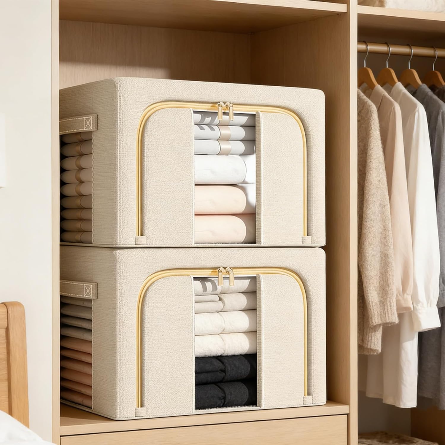 6 Pieces double View fabric Storage Cases For Wardrobe Underbed Seasonal Apparel Keeping Features: Sturdy Foldable Storage: Features a reinforced steel frame construction with thick metal wires that maintains box shape during handling Easy to assemble by simply unfolding the side steel frames for immediate use Visible Panels: Equipped with large clear panels on both front and side sections for easy viewing and quick access to stored items Top and front closure designs allow organization of clothes and belongings Resilient Construction: Made from strong oxford fabric with an internal steel frame for stability Firm fiberboard base provides excellent load bearing capacity, available in 40L and 70L sizes for versatile storage needs Versatile Usage: Ideal for storing clothes, bedding, seasonal decorations, quilts, and more Designed with comfortable handles for easy portability, perfect for bedrooms, closets, studies, or under bed placement Compact Design: Space saving dimensions ( 40x30x20cm) optimize efficiency while keeping items neatly organized The foldable feature allows effortless storage when not in use Specifications: Substance: Oxford cloth Net weight: 1360 Size: 40x30x20cm Usage scenarios: bedroom, wardrobe, study, offices Package Includes: Foldable clothing storage boxx6 Note: Pay attention to the storage methods