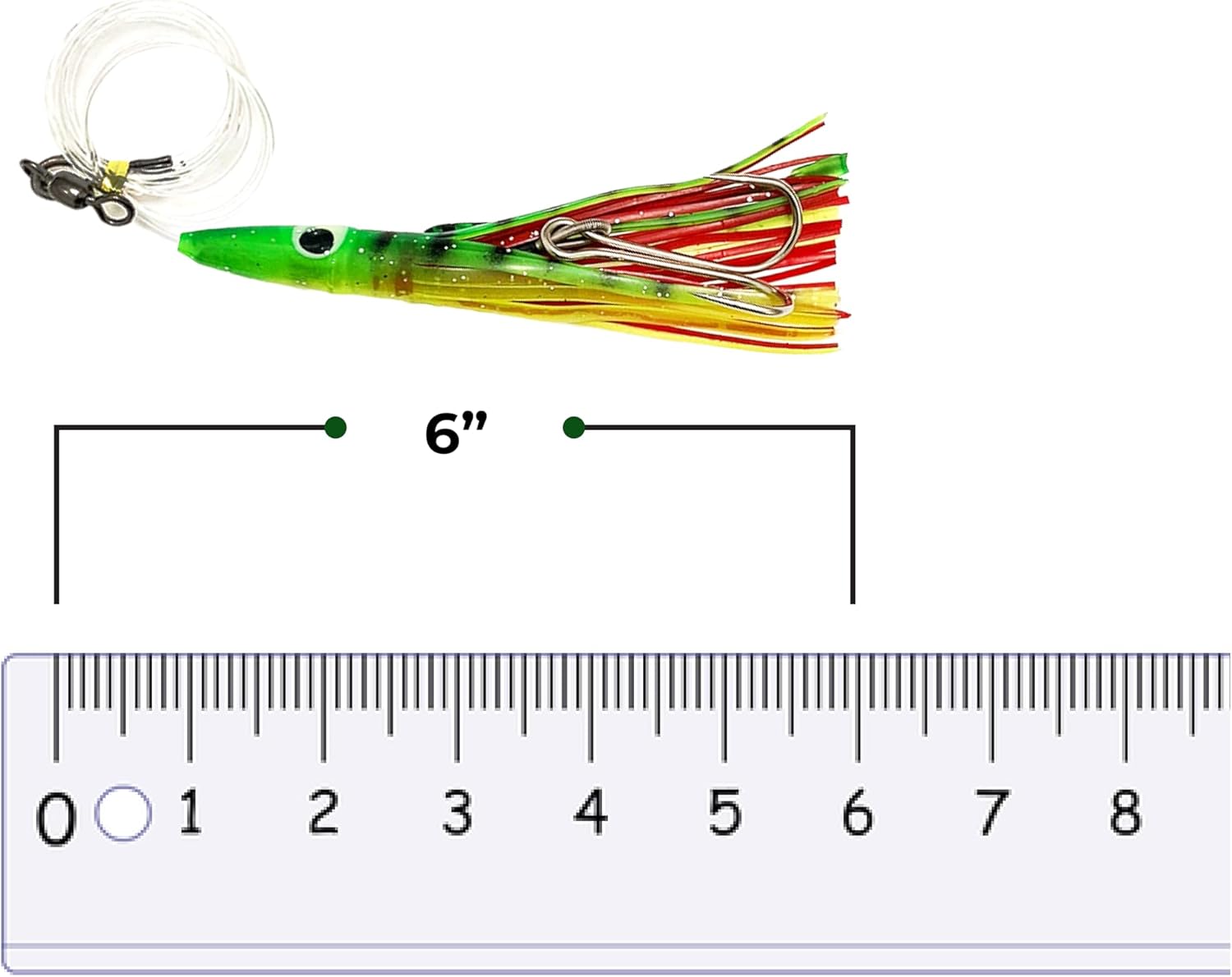 Introducing a set of 6 brand new 6” Tuna Clone rigs, expertly designed for saltwater trolling. These tuna lures are specifically crafted for targeting Albacore on the West Coast, making them a top choice among saltwater fishing lures. Widely recognized as the most effective option for all tuna species, these weighted tuna rigs excel in offshore trolling. Best when run just below the surface at standard trolling speeds, these Tuna Clone lures are essential fishing gear for any serious angler. Perfect for your offshore fishing adventures, including targeting Wahoo, these blue and white tuna clone lures are a must-have addition to your tackle box.