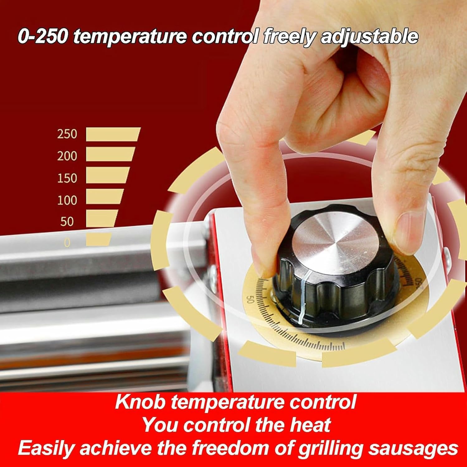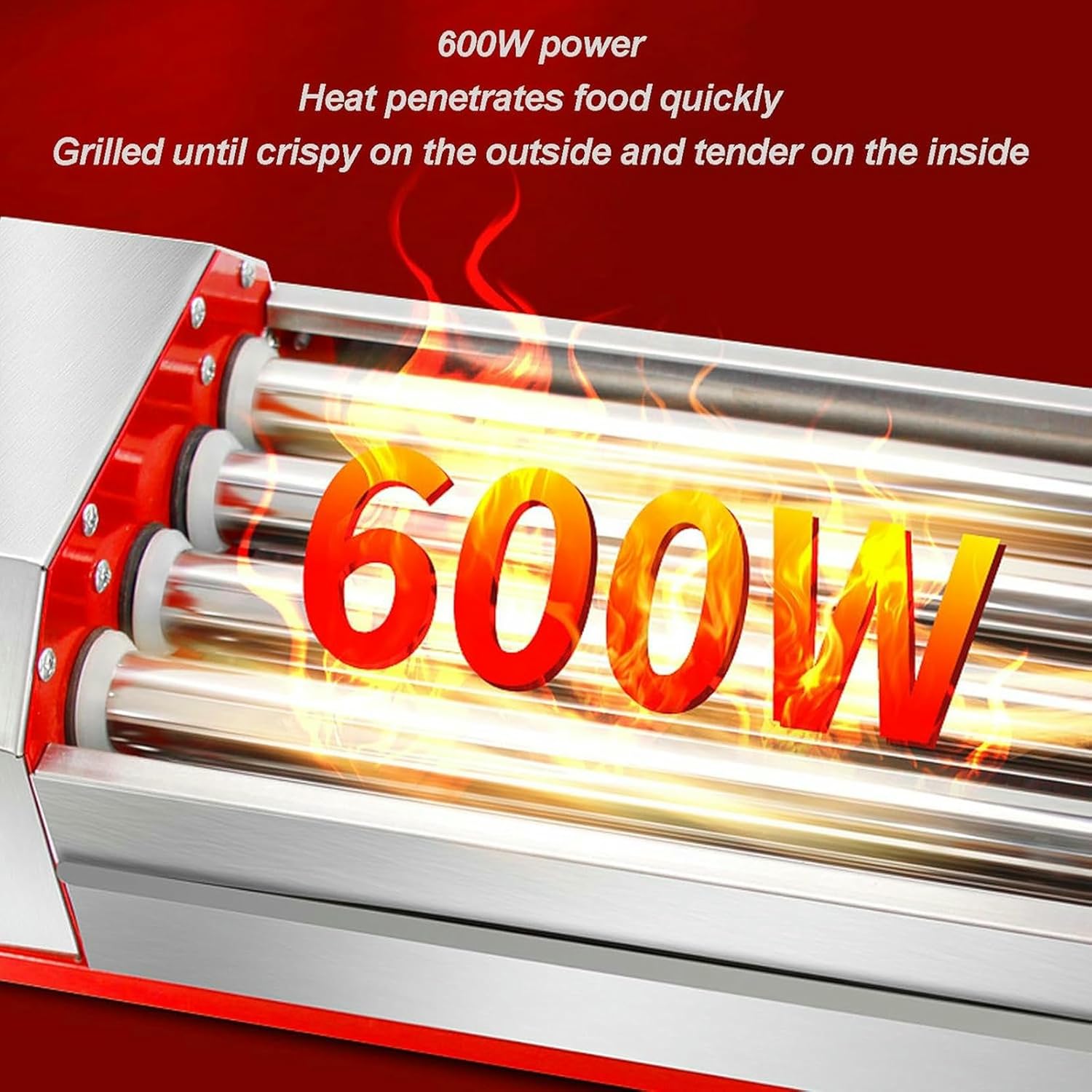 Transform your cooking experience with our top-rated hot dog drum griller. Whether you're hosting a party, running a concession stand, or just enjoying a family dinner, our hot dog drum griller is the ultimate solution for making delicious, evenly grilled hot dogs every time. Order now! ! Product Name: Hot Dog Drum Griller Rated Voltage: 220V/50HZ Rated Power: 600W Overall Size: 425*180*130MM Net Weight: Approximately 3.0KG Number of drums: 4 tube models Drum Material: 304 Stainless Steel Temperature Control Range: 0-250°C (0-482°F)Packing List Hot Dog Drum Cooker*1